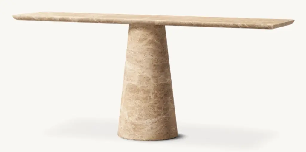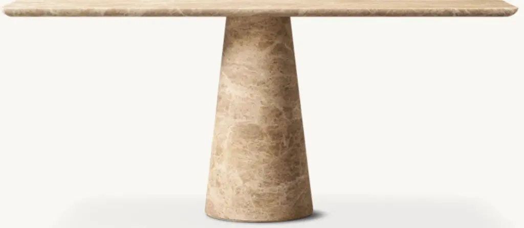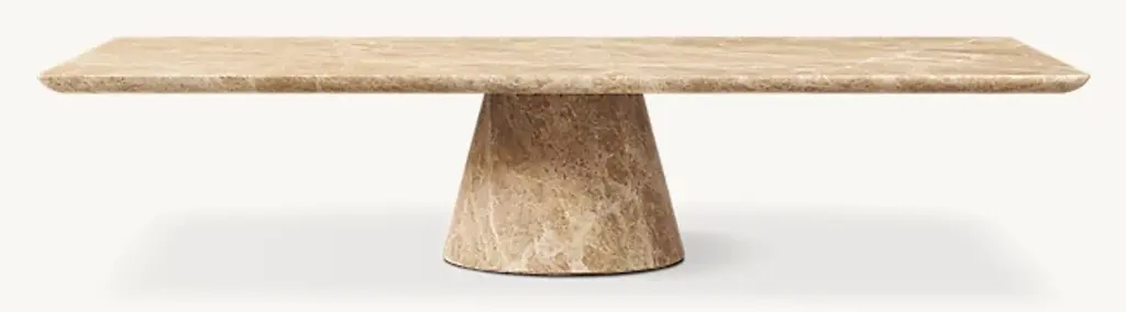 An archetypal 1970s silhouette, our Cellini table exhibits the tailored restraint and understatement of Italian minimalist design. Crafted of natural stone, the form's gracefully tapered pedestal and smoothly rounded top communicate an organic purity, replete with natural veining and pitting that make each table unique. SHOP THE ENTIRE COLLECTION
