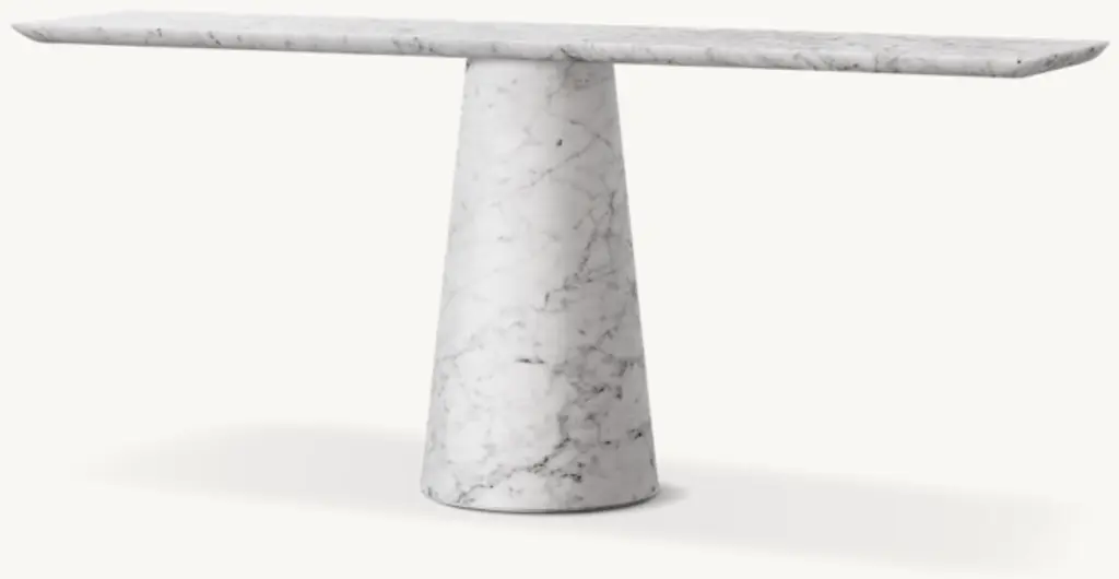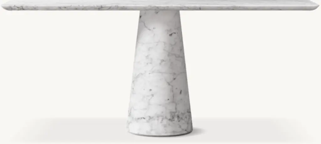 An archetypal 1970s silhouette, our Cellini table exhibits the tailored restraint and understatement of Italian minimalist design. Crafted of natural stone, the form's gracefully tapered pedestal and smoothly rounded top communicate an organic purity, replete with natural veining and pitting that make each table unique. SHOP THE ENTIRE COLLECTION