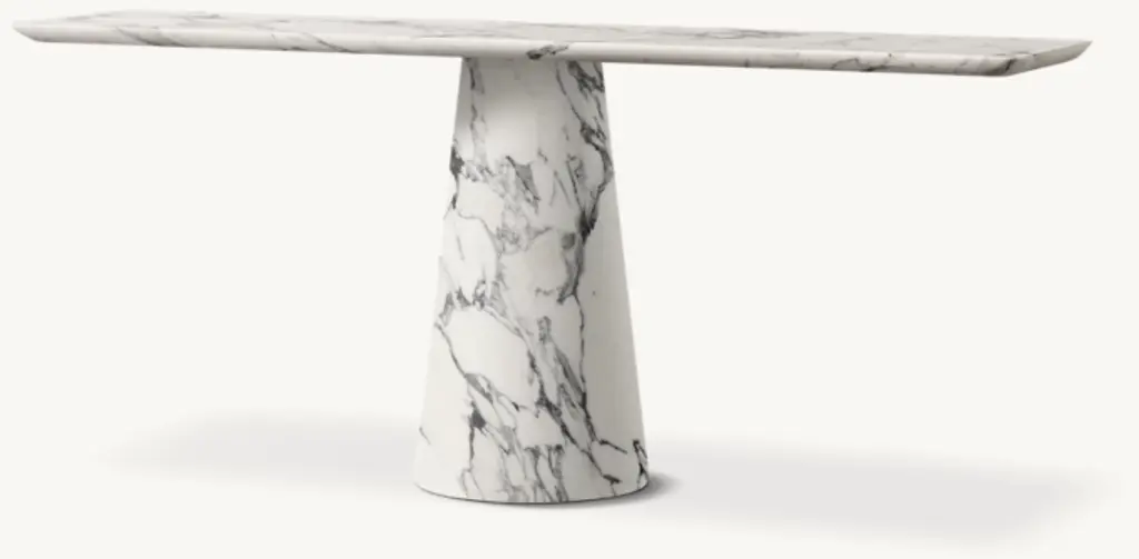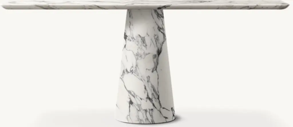 An archetypal 1970s silhouette, our Cellini table exhibits the tailored restraint and understatement of Italian minimalist design. Crafted of natural stone, the form's gracefully tapered pedestal and smoothly rounded top communicate an organic purity, replete with natural veining and pitting that make each table unique. SHOP THE ENTIRE COLLECTION