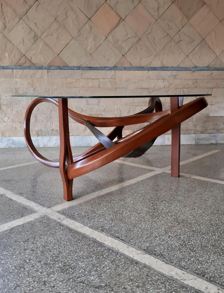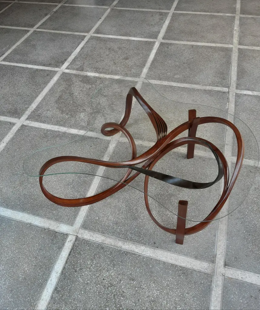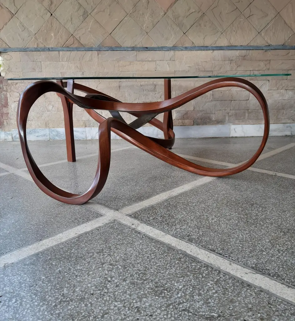 A minimal design achieved by bending wood and leather which reveals beautiful details at a closer look. The walnut stain finish enhances the natural grains of wood along with its craftsmanship. The leather seamlessly emerges out of the bentwood and mimics a leaf sprouting from a branch, thus extending the depth of the overall piece. The Vrksa Series is based on bending solid wood to create the pieces, this has allowed us to design handmade furniture in a unique aesthetic in which the natural flow of the wood takes the reins of design. No two pieces are exactly the same because of the technique used; making each piece unique.Other points worth knowing:- The design may vary slightly from the piece in the pictures since each piece is handmade.- You can choose from an array of finishes.- The dimensions of the piece are customizable.