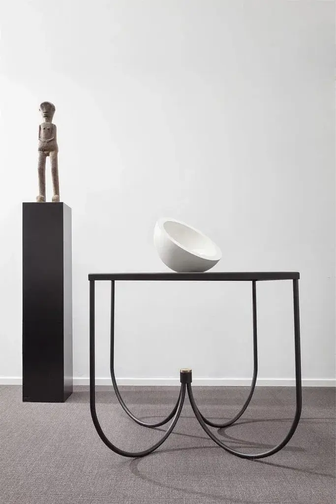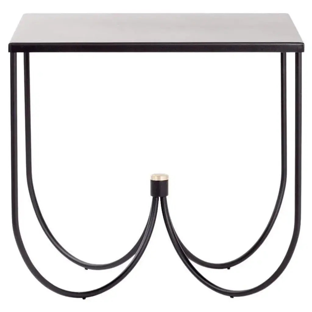 Centro table by mingardo dimensions: d80 x w80 x h75 cm materials: ral 9005 black varnished iron structure and satin natural brass details weight: 26 kg also available in different finishes. Available in four leg square top and three leg circular top version. Centro is a family of metal tables. Handcrafted entirely of metal elements, centro’s structure is based around the idea of meeting. Four metal arcs support a table top and continue to join together towards a single point at the heart of the table. The sinuous character of the legs creates a continuous supporting structure to its contrasting refined planar top.