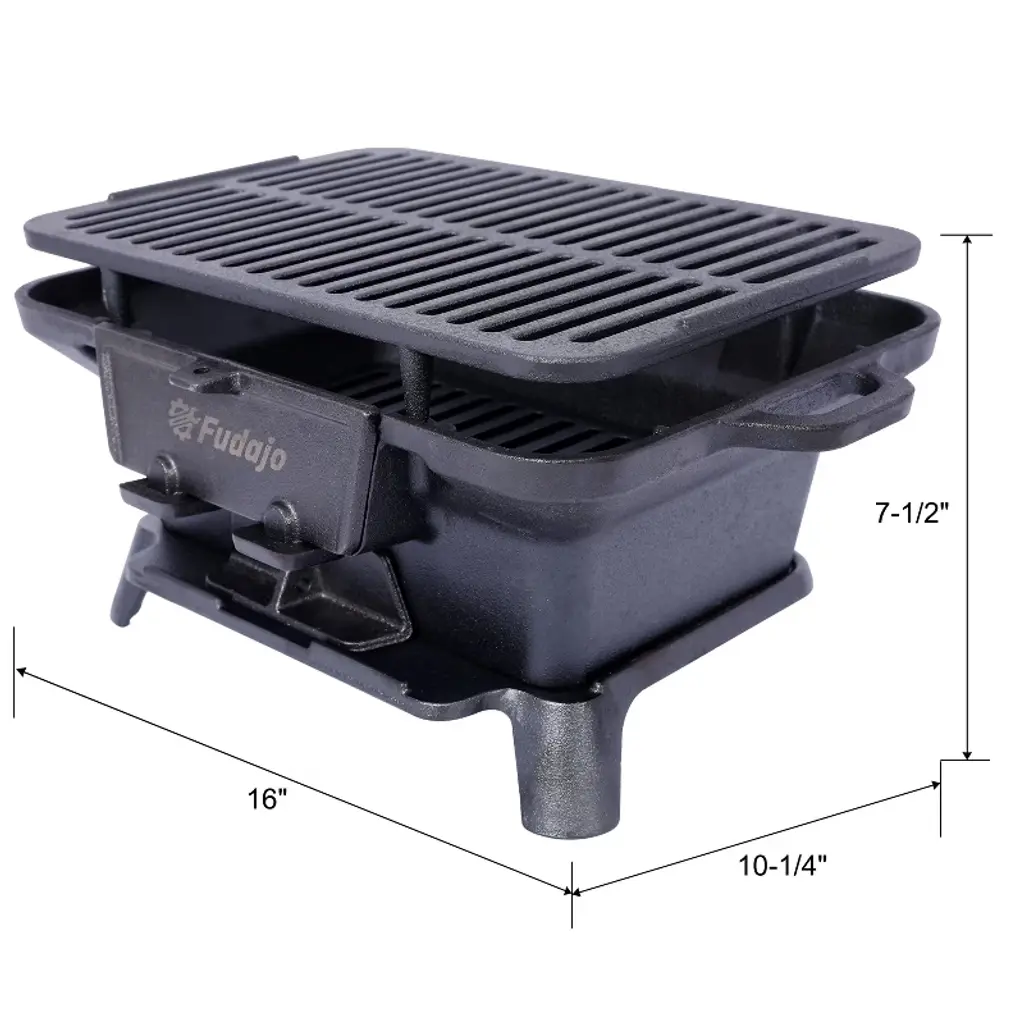 Cesicia Portable Charcoal Grill And Tabletop Cast Iron Skillet, Small Charcoal Grill, Camping Stove