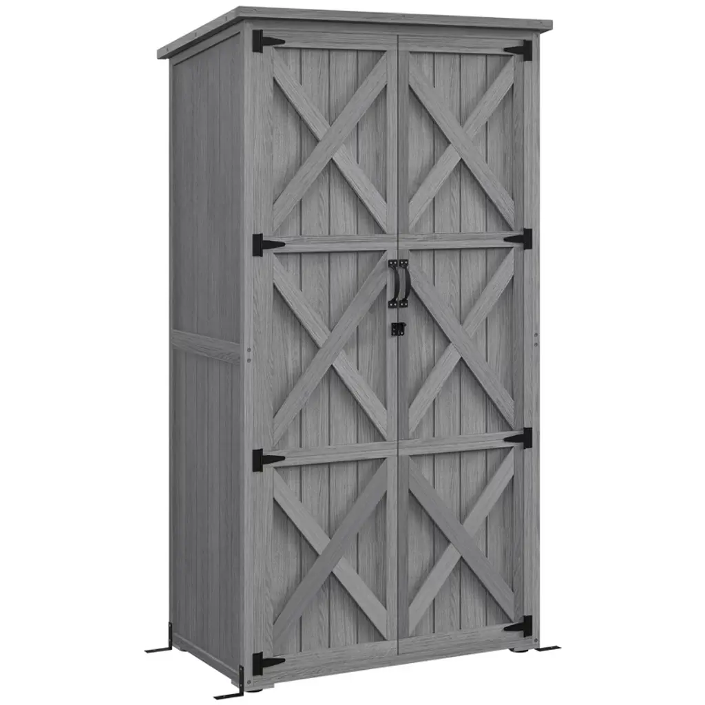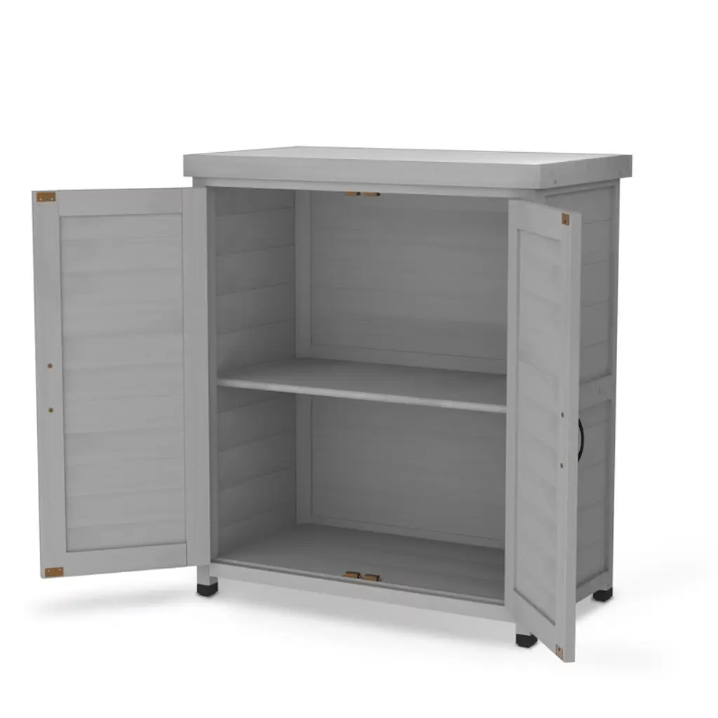 Our Potting Bench Table storage cabinet, made from premium cedar wood. The water-based coating and gray finish provide a beautiful rustic look and ensure durability for outdoor use. The X-shape design of our potting bench ensures exceptional strength, making it resistant to bending or puncture.