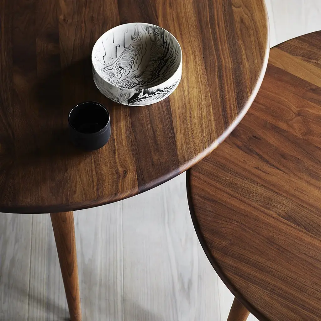 Designed by Hans J. Wegner in 1954. The simple and elegant CH008 table embodies Wegner's ideology and spirit for simplicity. Wegner, with his unique understanding of wood, its possibilities and limitations, created many designs each with its own personality yet in a consistent language. The CH 008 was originally designed by Hans J. Wegner to compliment the CH 25 Easy Chair but is a great companion for the CH007 Shell Chair as well. The CH008 is available with a diameter of