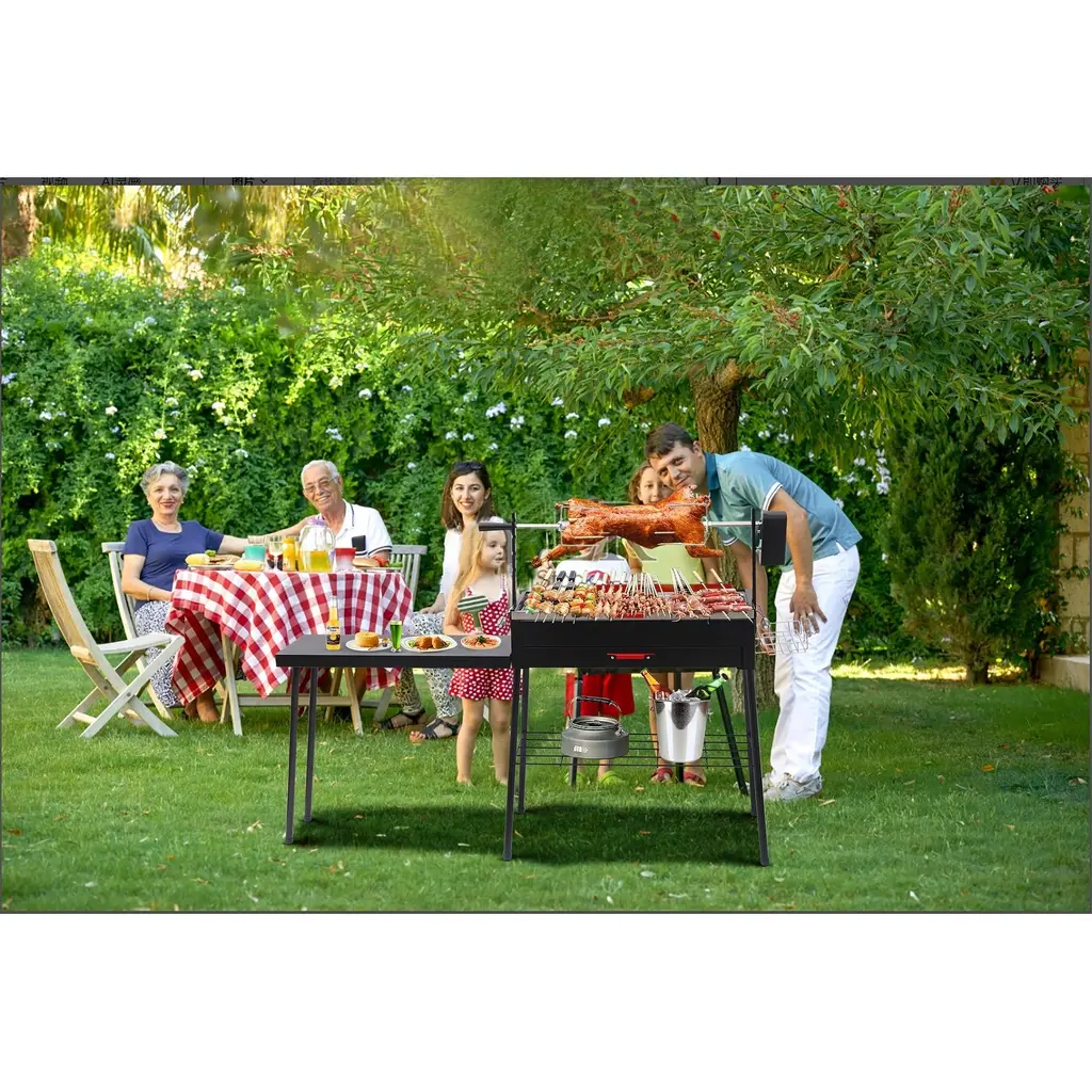 Charcoal Grill, Portable Charcoal Grill, Rotisserie Grill, Foldable Camping Barbecue With Detachable Table And Bbq Gloves - Metal/stainless Steel