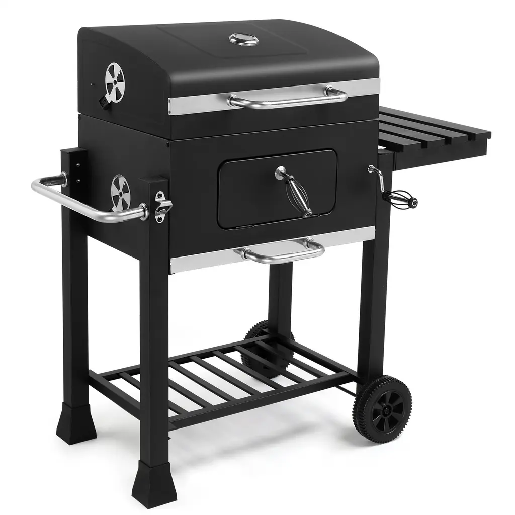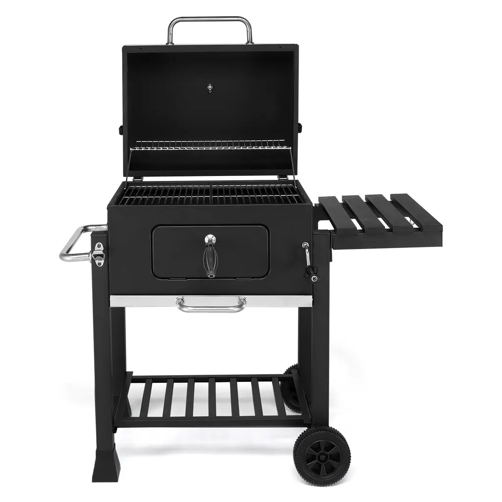 Specification: Key Features:Description:Elevate your outdoor cooking with our Heavy-duty Charcoal Grill, the perfect companion for picnics, patios, gardens, and backyard gatherings. Designed for both convenience and performance, this grill features a spacious cooking area, adjustable charcoal pan, and precise heat control, ensuring your food is always cooked to perfection. With a foldable side table for extra prep space and wheels for easy mobility, this grill combines functionality with versatility, making it the ultimate choice for grilling enthusiasts. Experience effortless cooking and enjoy delicious meals with family and friends using our top-of-the-line charcoal grill.