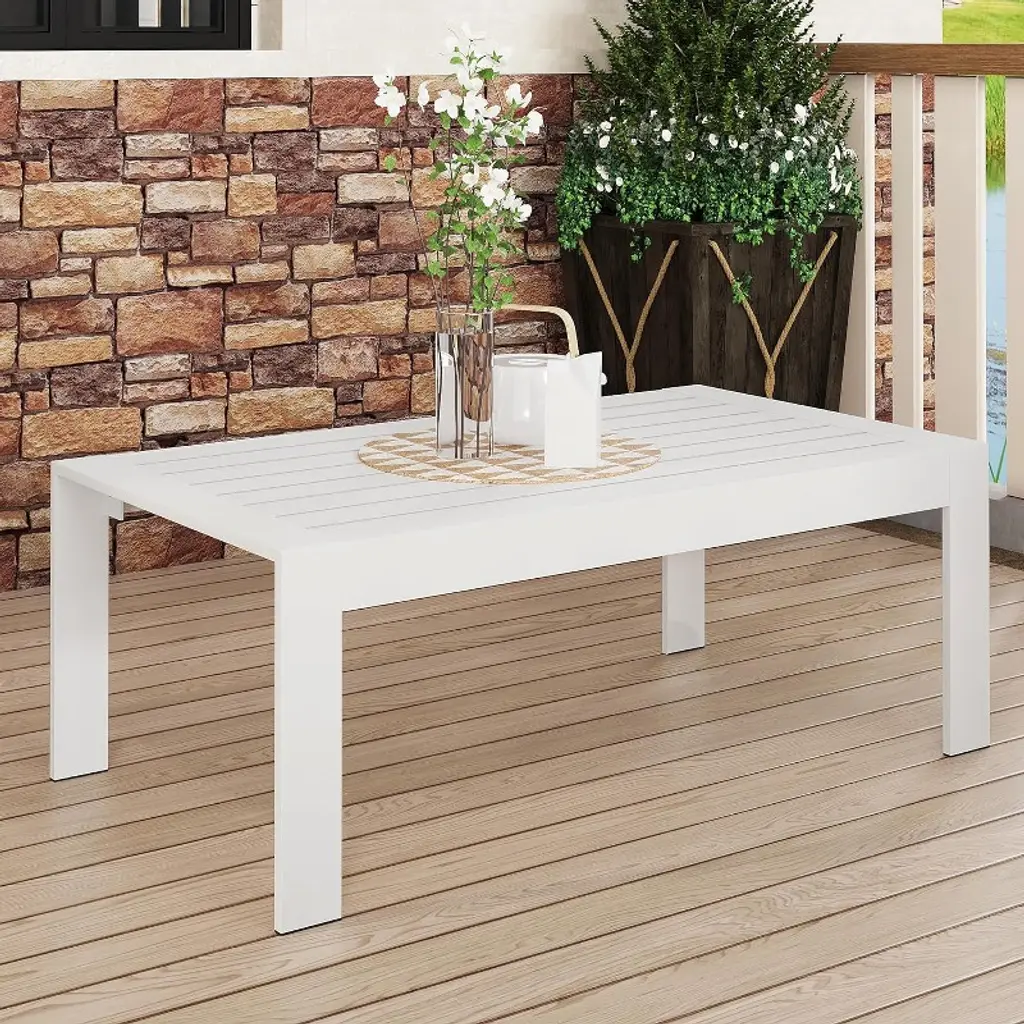 Chery Life All-weather Aluminum Outdoor Coffee Table, Modern Coffee Table For Outside, Rectangle Patio Coffee Table-white