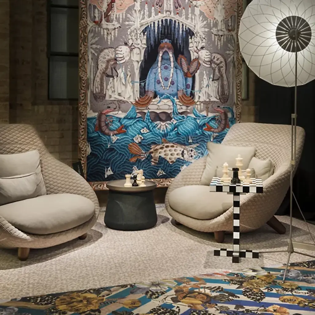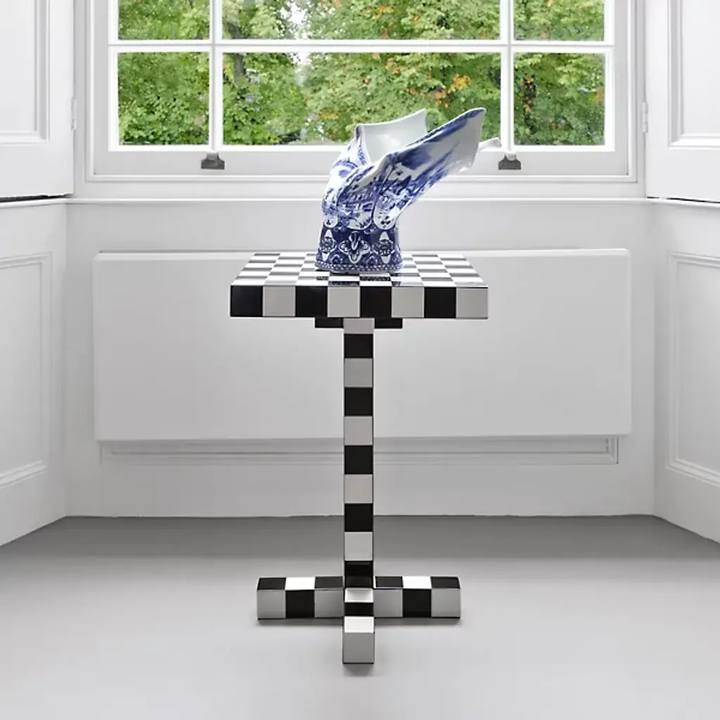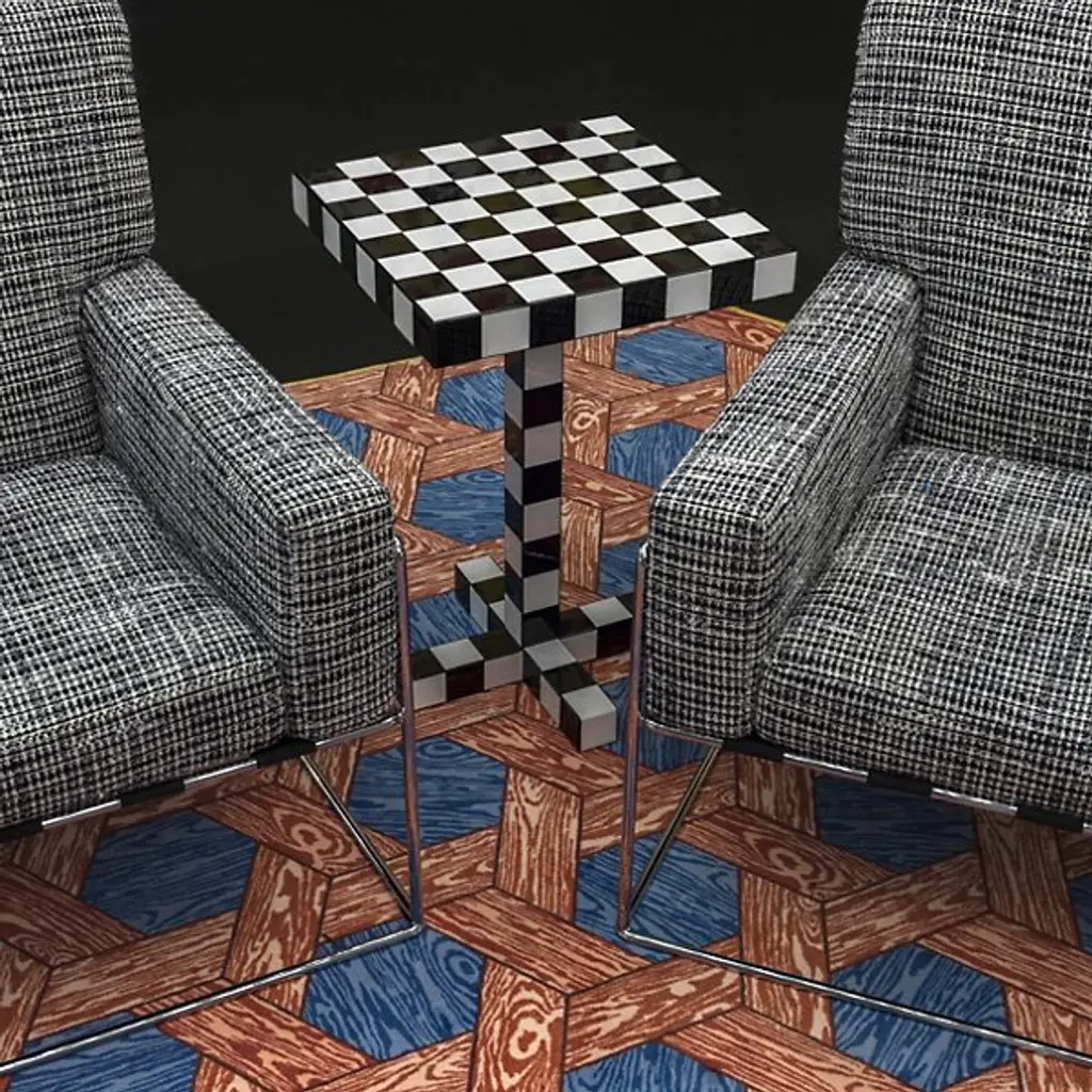 Presented by Moooi, the Chess Table is a playful piece by Sofia Lagerkvist and Anna Lindgren, members of the Swedish design studio Front. Experimental and focused on storytelling, their style is easily seen in this table. Made in the Netherlands of lacquered wood, steel, and MDF, this 2009 iconic design features a bold pattern that covers the entirety of it, enticing those occupying it to either admire the look or challenge each other in a rousing game.