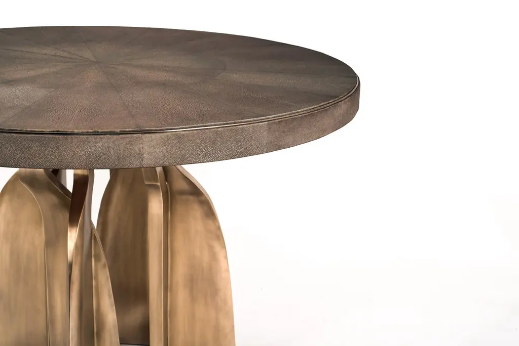"Chital" Breakfast Table In Mink Shagreen And Bronze-Patina Brass By Kifu, Paris