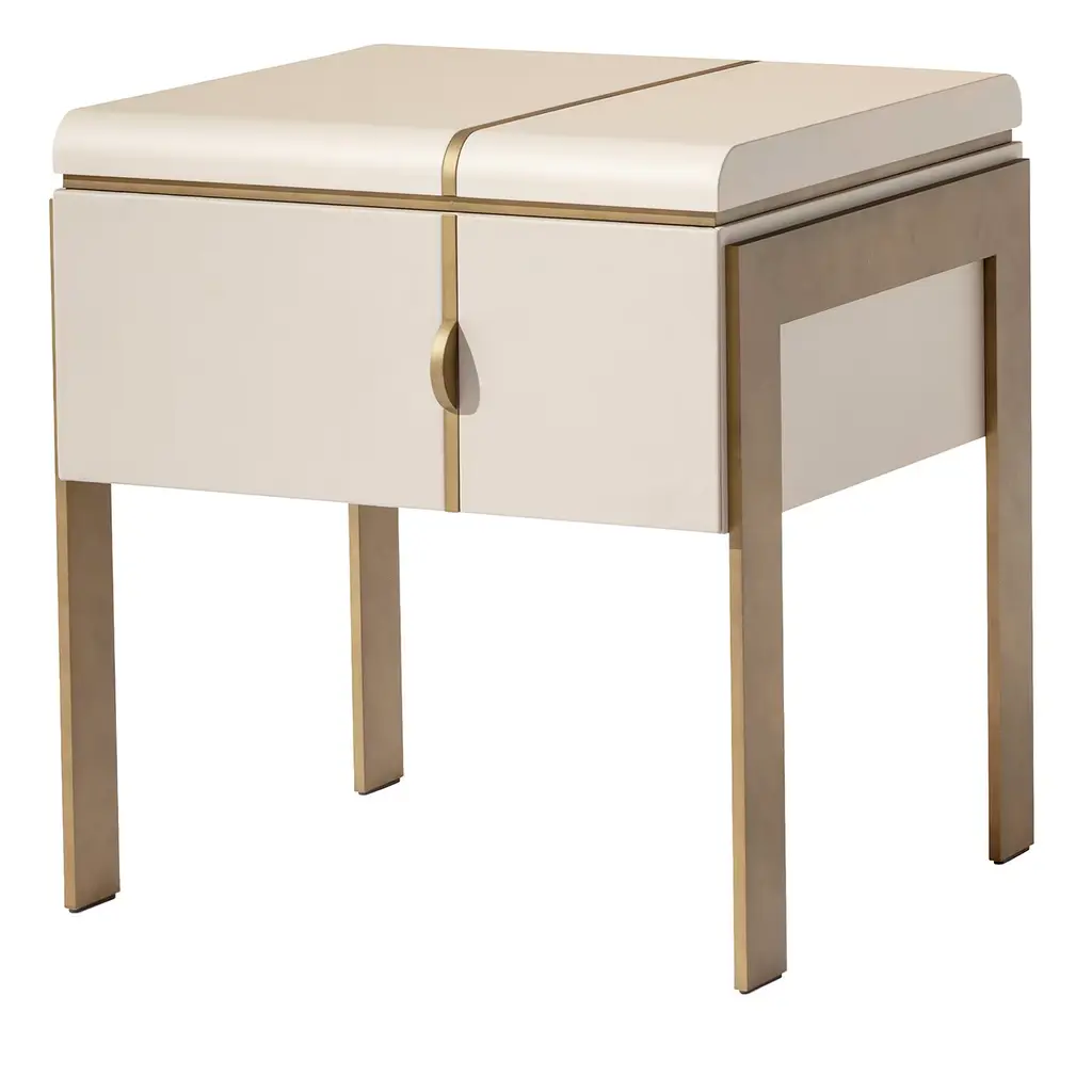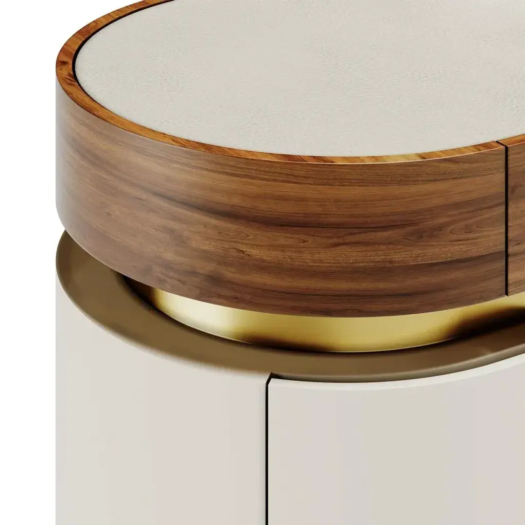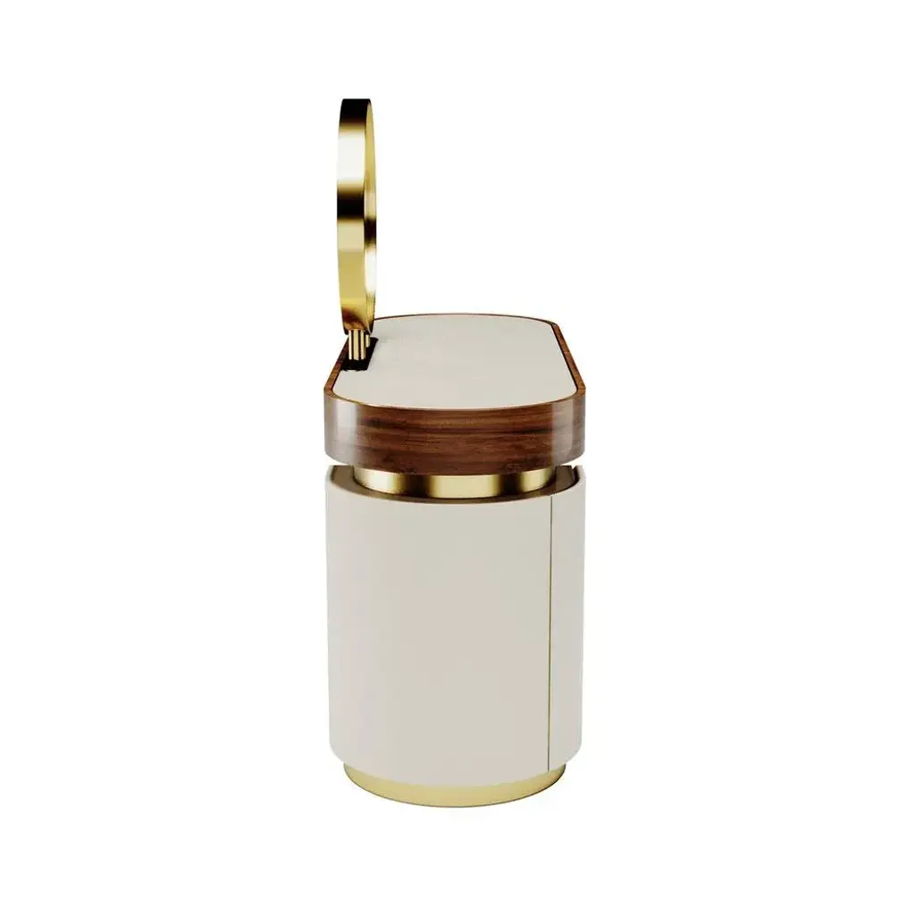 Claire Dressing Table embraced an Art Deco style with curvy and opulent shapes. This eye-catching modern dressing table has the promise of enriching any master bedroom design project\. MATERIALS: Structure Walnut Veneer and Gloss Beige Lacquer and Polished Brass; Clear Mirror with Gold Polished Stainless Steel Trim; Table Top in Upholstered Synthetic Leather.