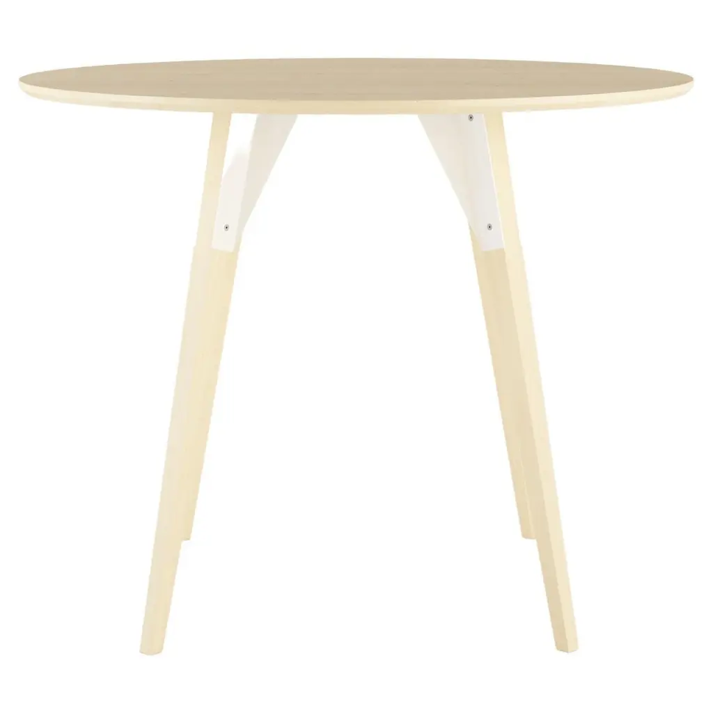 The Clarke Collection comes in ten different table top sizes, two wood species, and two metal finishes. The exposed stainless steel bolts blur the line between Scandinavian and Industrial styles.