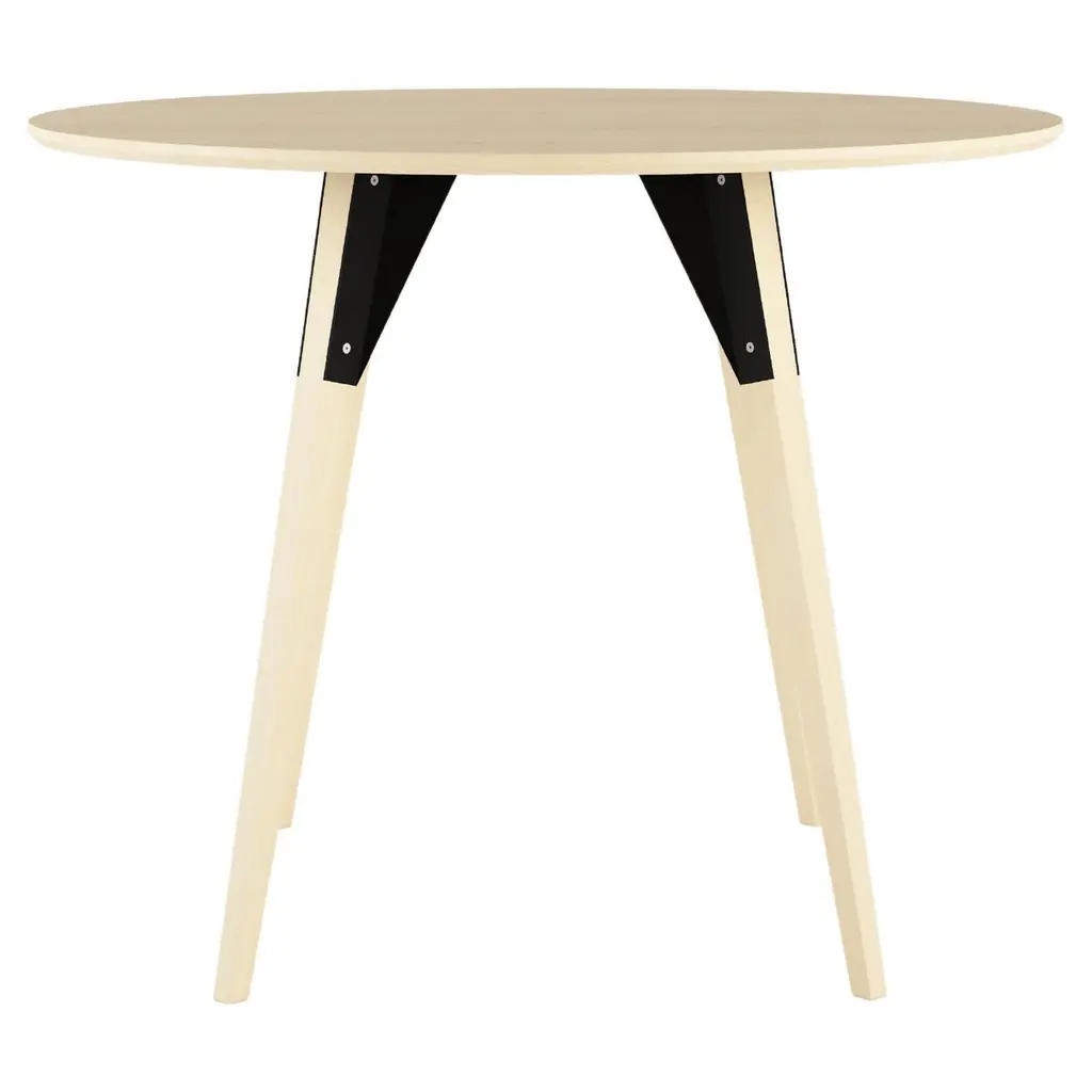 The Clarke Collection comes in ten different table top sizes, two wood species, and two metal finishes. The exposed stainless steel bolts blur the line between Scandinavian and Industrial styles.