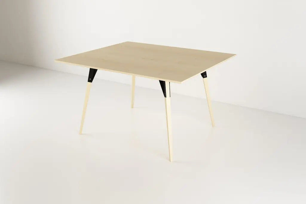 The Clarke Collection comes in ten different table top sizes, two wood species, and two metal finishes. The exposed stainless steel bolts blur the line between Scandinavian and Industrial styles.n