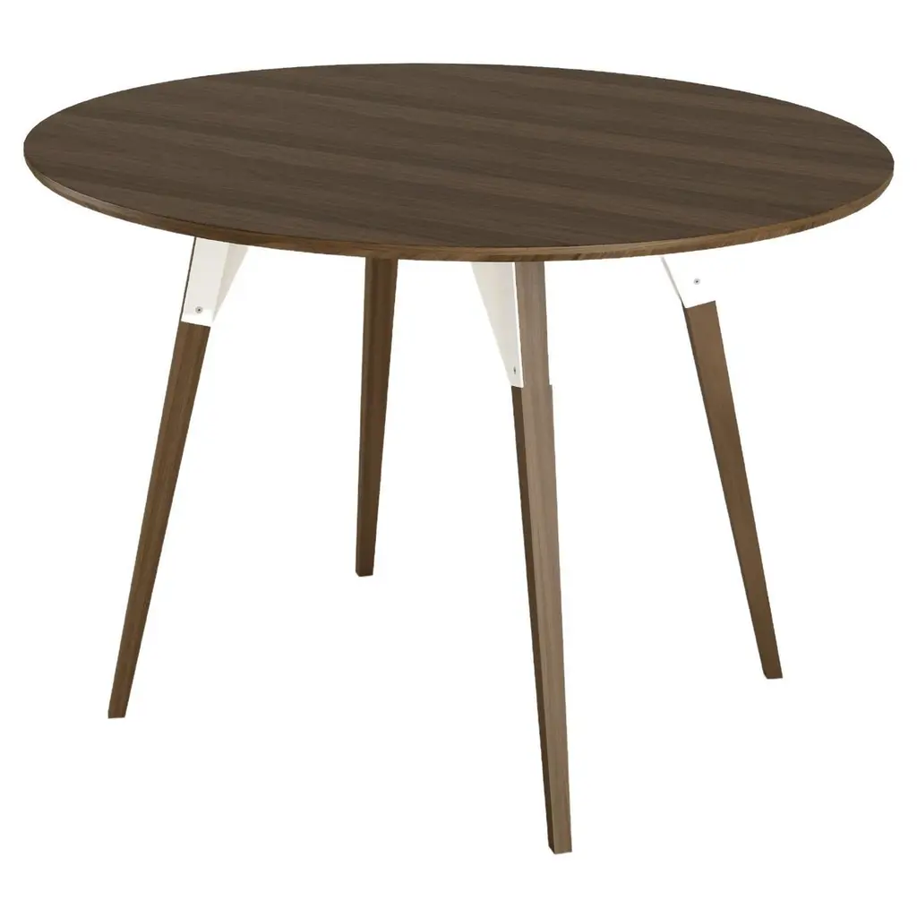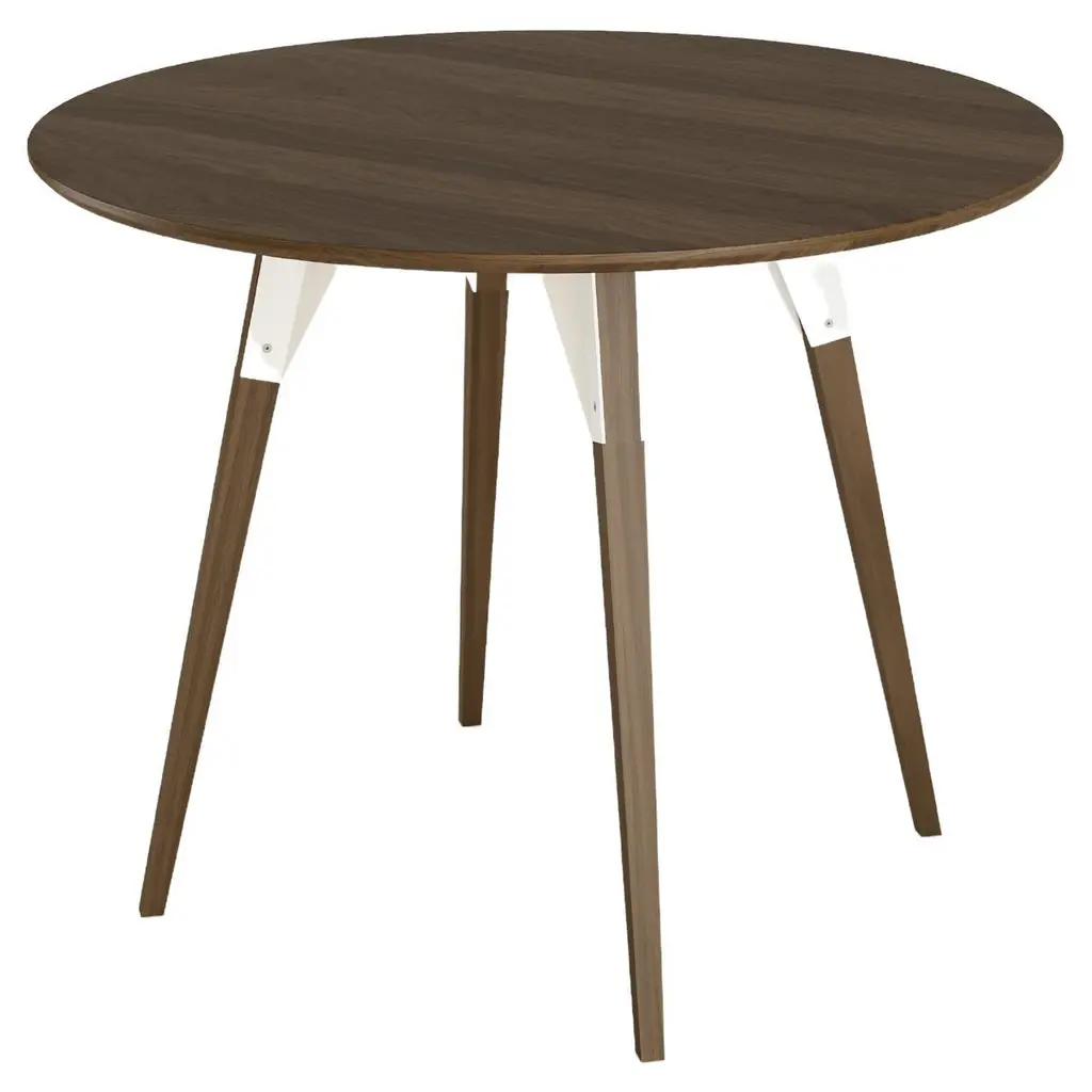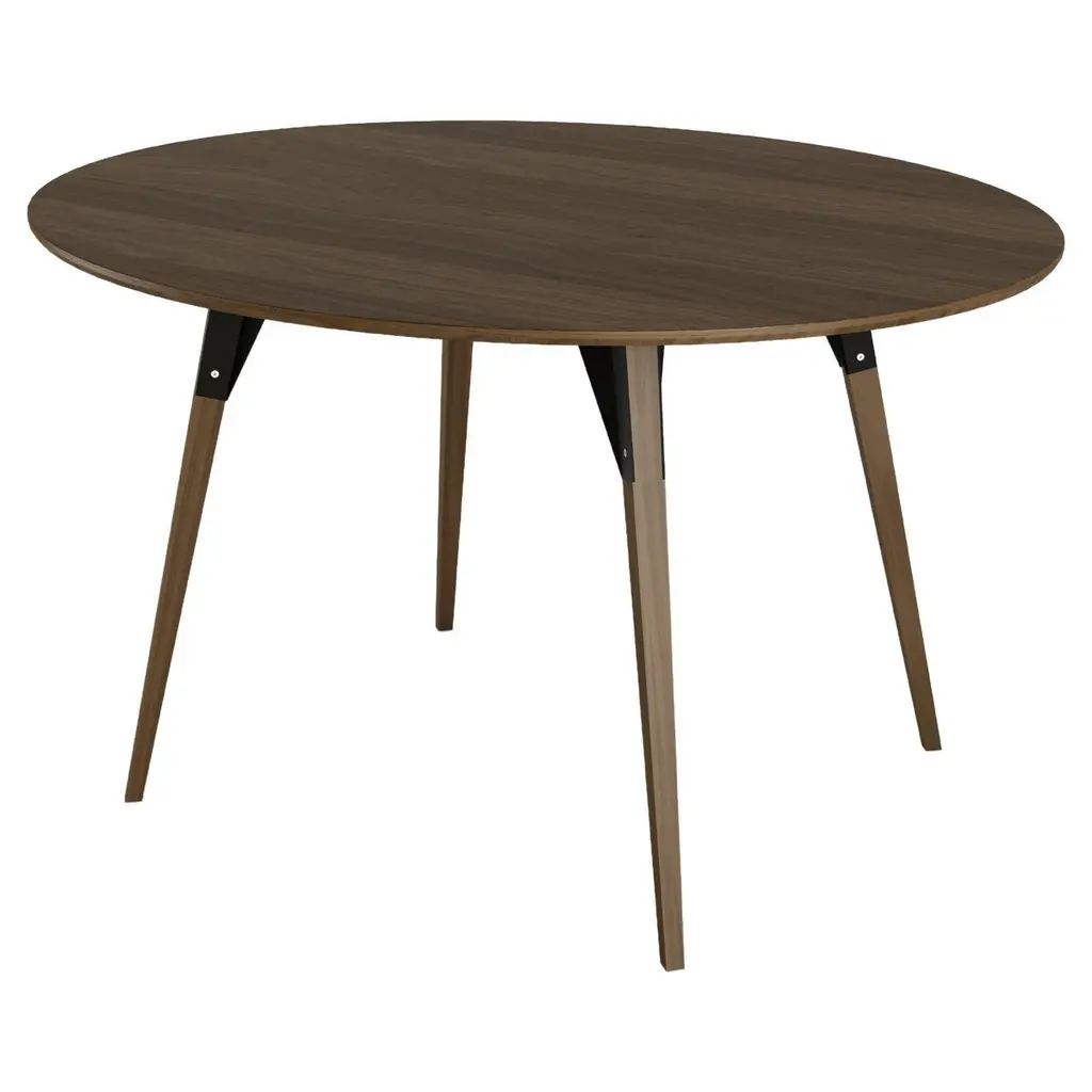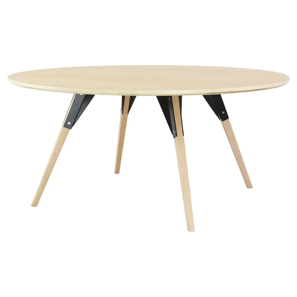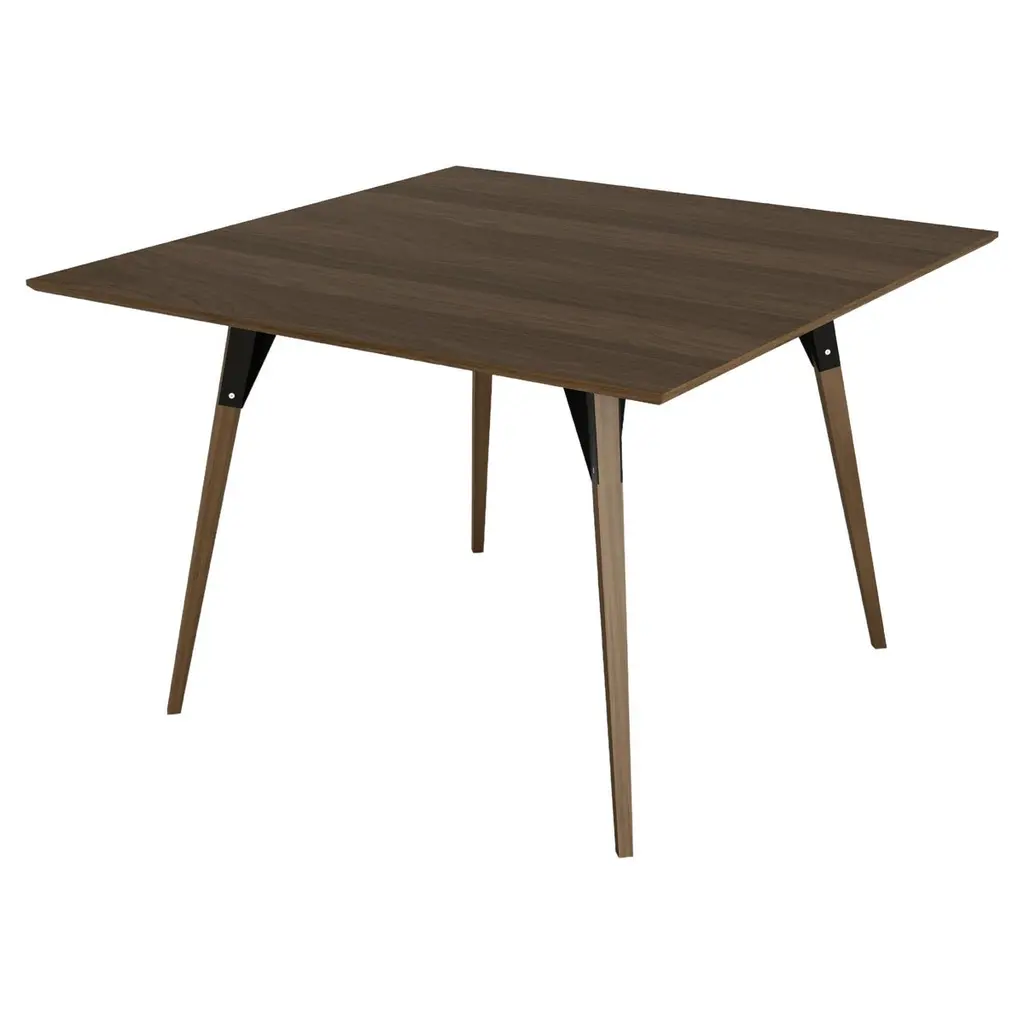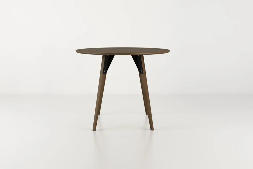 The Clarke Collection comes in ten different table top sizes, two wood species, and two metal finishes. The exposed stainless steel bolts blur the line between Scandinavian and Industrial styles.