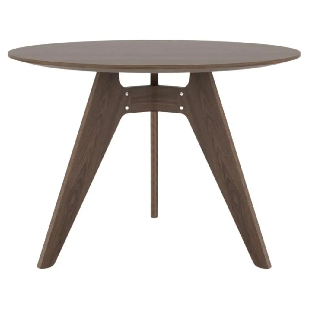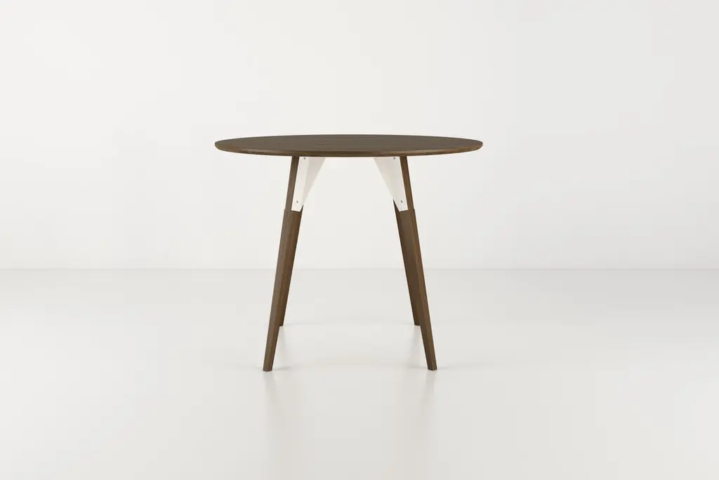 The Clarke Collection comes in ten different table top sizes, two wood species, and two metal finishes. The exposed stainless steel bolts blur the line between Scandinavian and Industrial styles.