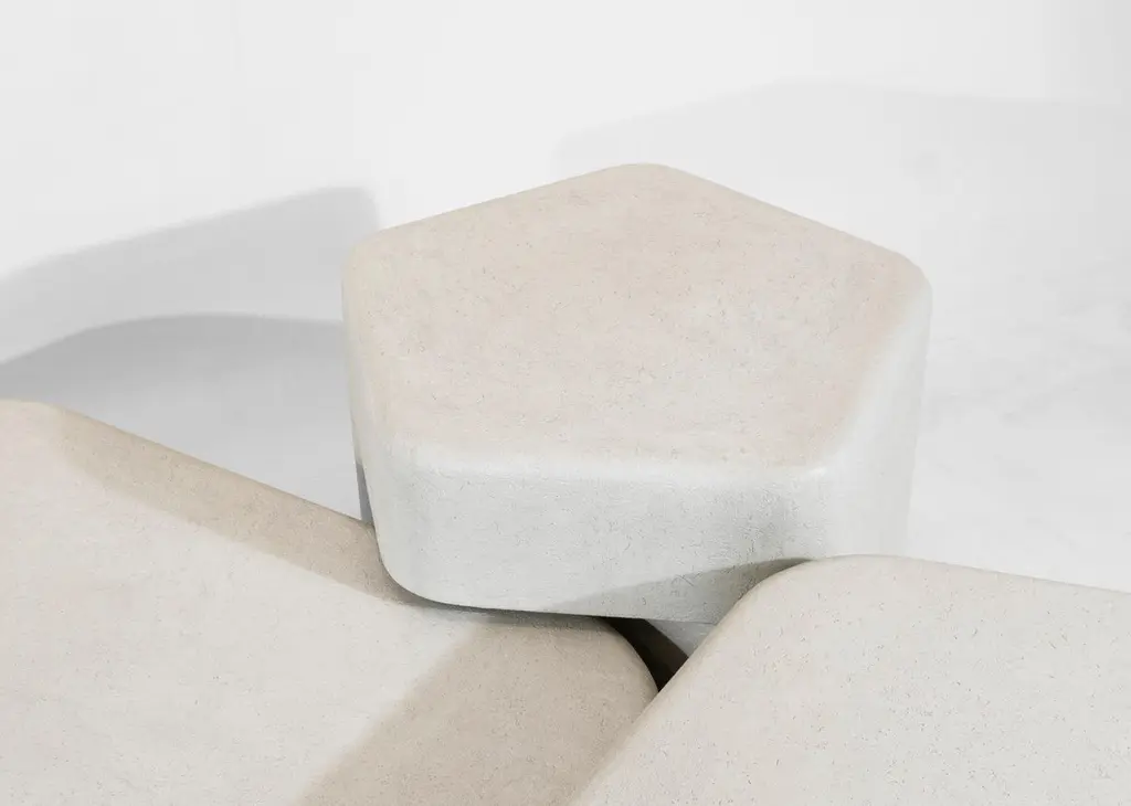 I wanted to see what the interaction was between the shapes of an extruded pentagon and one of it’s 5 identical isosceles triangles. By separating the moment, on either side of the triangular base, where the two forms merge into one another, a striking asymmetry emerges that creates a piece which shifts it’s appearance constantly depending on the line of sight.Quinlan OsborneAvailable in Plaster and WoodCustomizable in Size upon request
