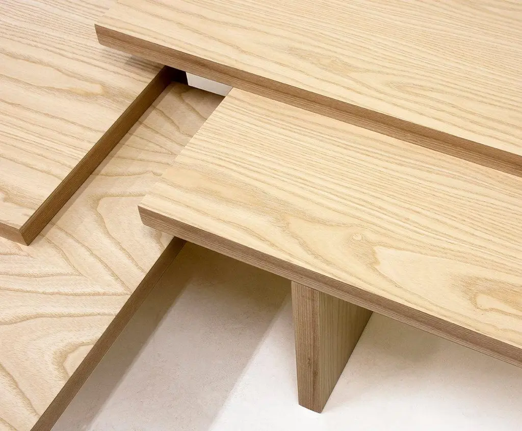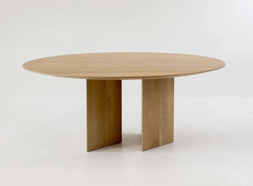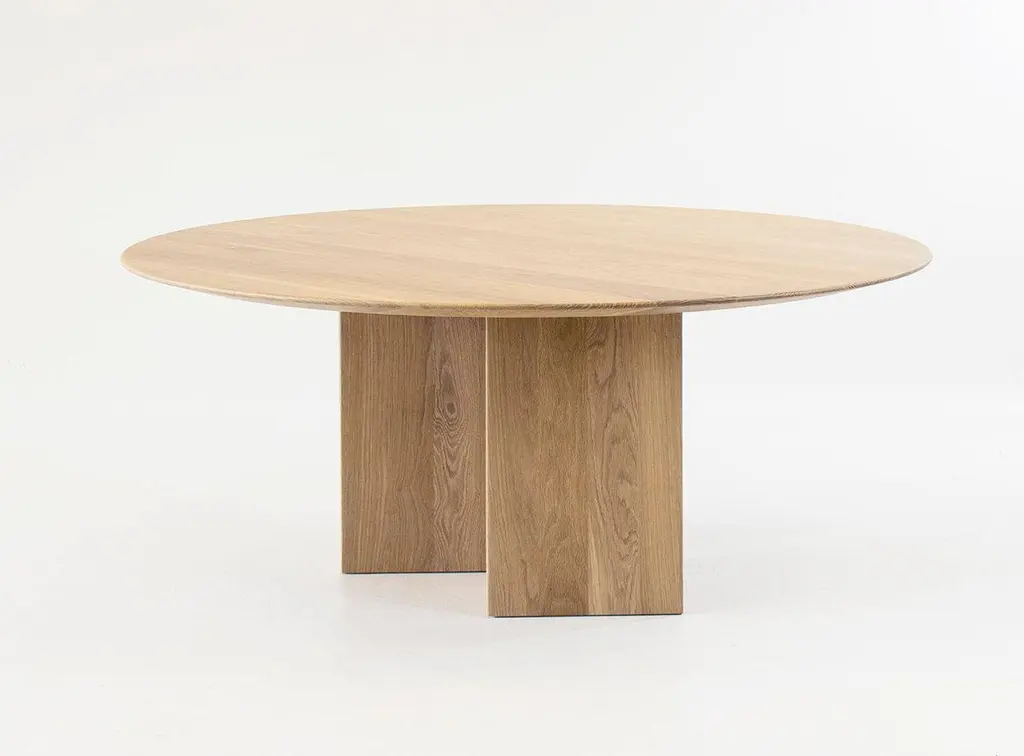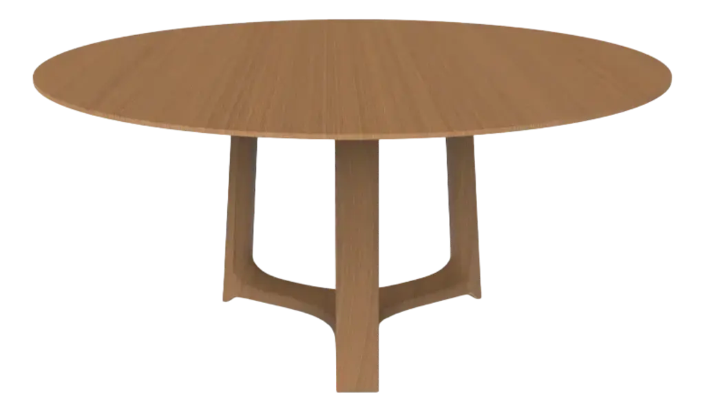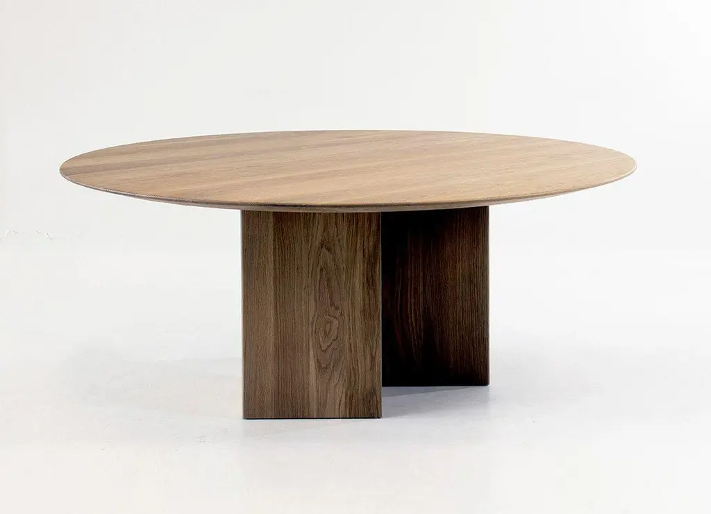 The round version of this table explores similar ideas as its rectangular sibling where the offset base allows for a variety of differing visuals depending on the line of sight. Available in both wood and marble this table can be customized to fit any space.Available in 2 sizes: 60, 39