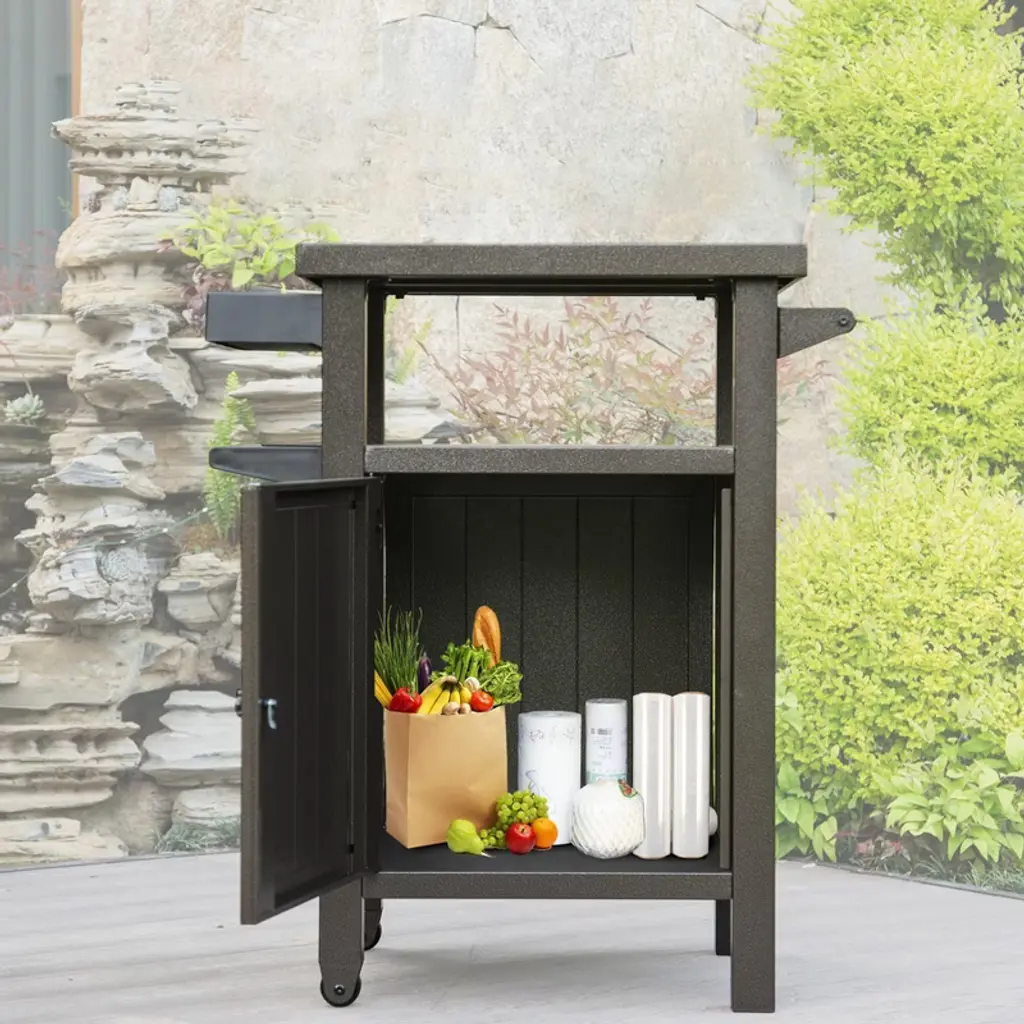 Clihome Outdoor Metal Grill Storage Carts,portable Storage Cabinet Table With Wheels