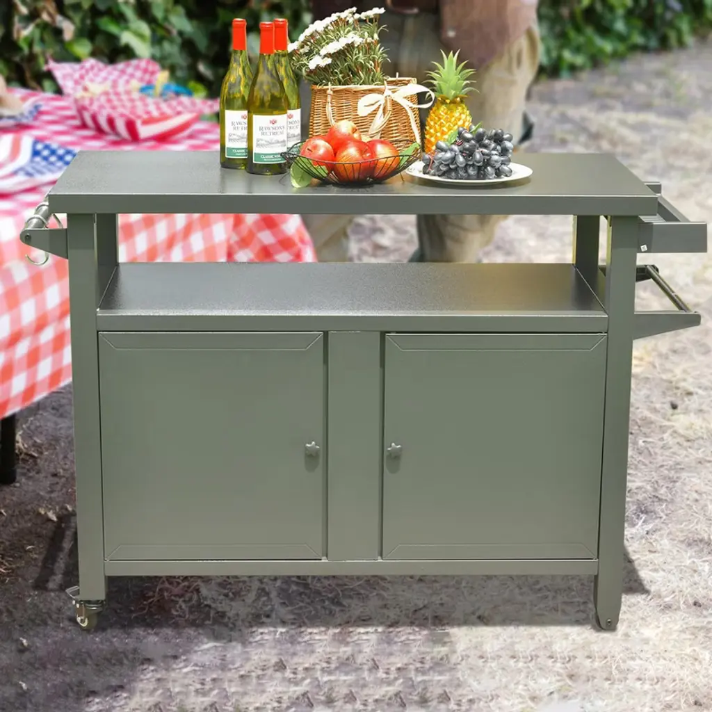 Clihome Outdoor Metal Storage Grill Carts,grill Table Kitchen Dining Island With Wheels