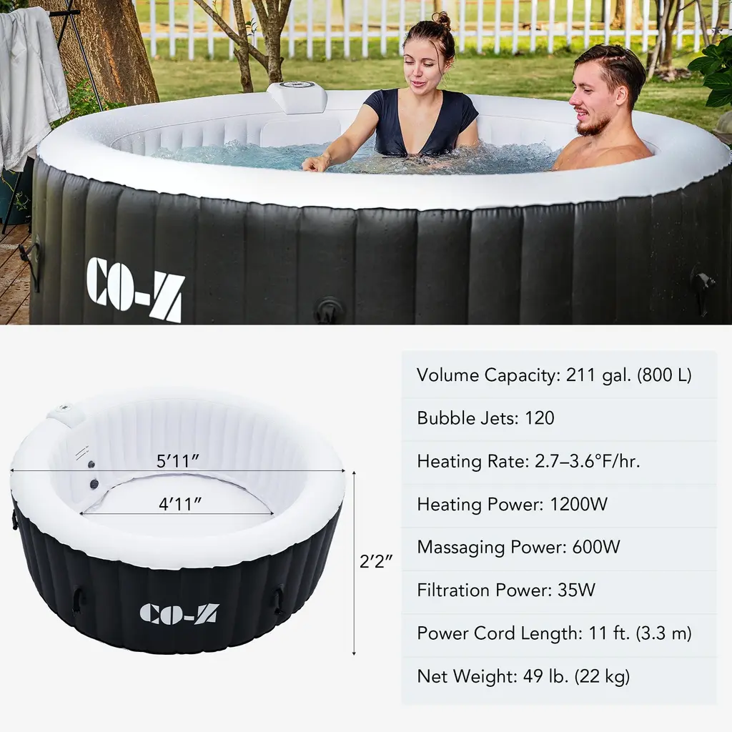 Co-Z Round Inflatable Hot Tub, 4 Person Blow Up Portable Hot Tub - Black & White