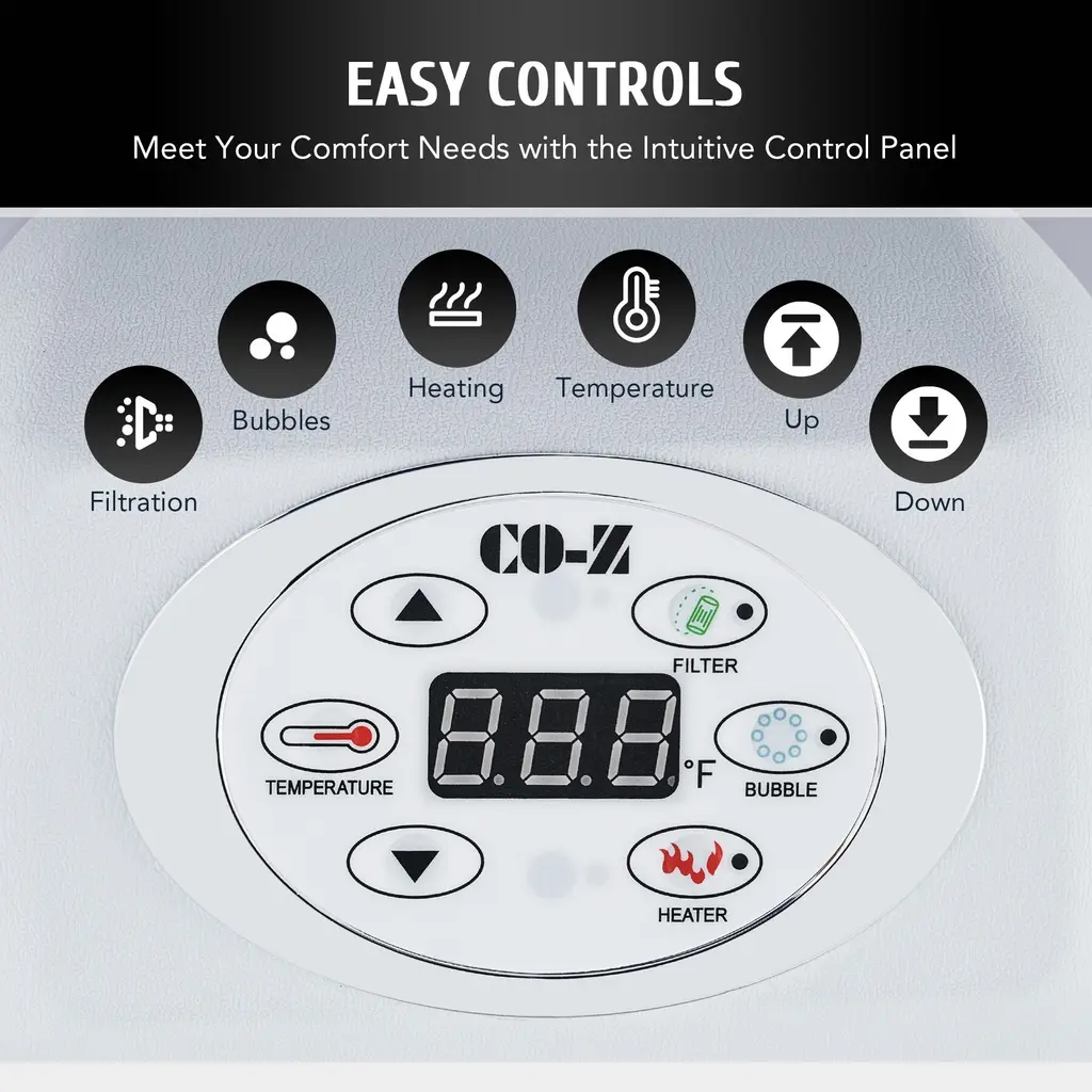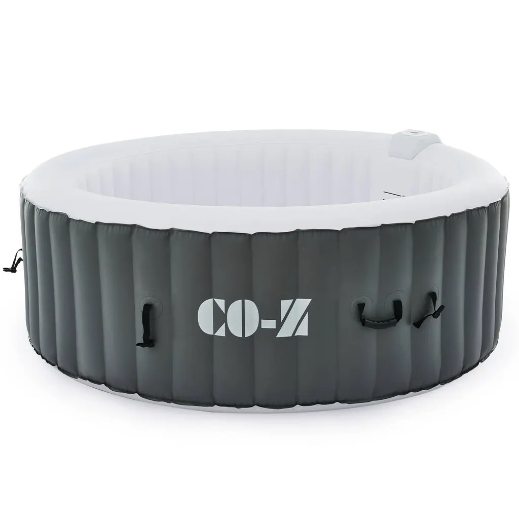 Experience the ultimate relaxation with CO-Z Round Inflatable Hot Tub, the perfect addition to your backyard oasis. With its durable PVC build, intuitive control panel, and rejuvenating bubble jets, this 6-foot-wide hot tub accommodates up to four adults, offering you and your loved ones a true-to-spa experience in the comfort of your own home. Its fitted cover and two filter cartridges make maintenance a breeze, while the built-in drain ensures quick and easy water removal. Create memories and unwind with CO-Z's portable hot tub.Features: