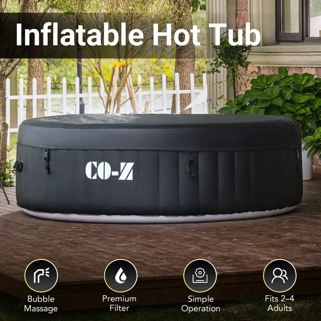 Experience the ultimate relaxation with CO-Z Round Inflatable Hot Tub, the perfect addition to your backyard oasis. With its durable PVC build, intuitive control panel, and rejuvenating bubble jets, this 6-foot-wide hot tub accommodates up to four adults, offering you and your loved ones a true-to-spa experience in the comfort of your own home. Its fitted cover and two filter cartridges make maintenance a breeze, while the built-in drain ensures quick and easy water removal. Create memories and unwind with CO-Z's portable hot tub.Features: