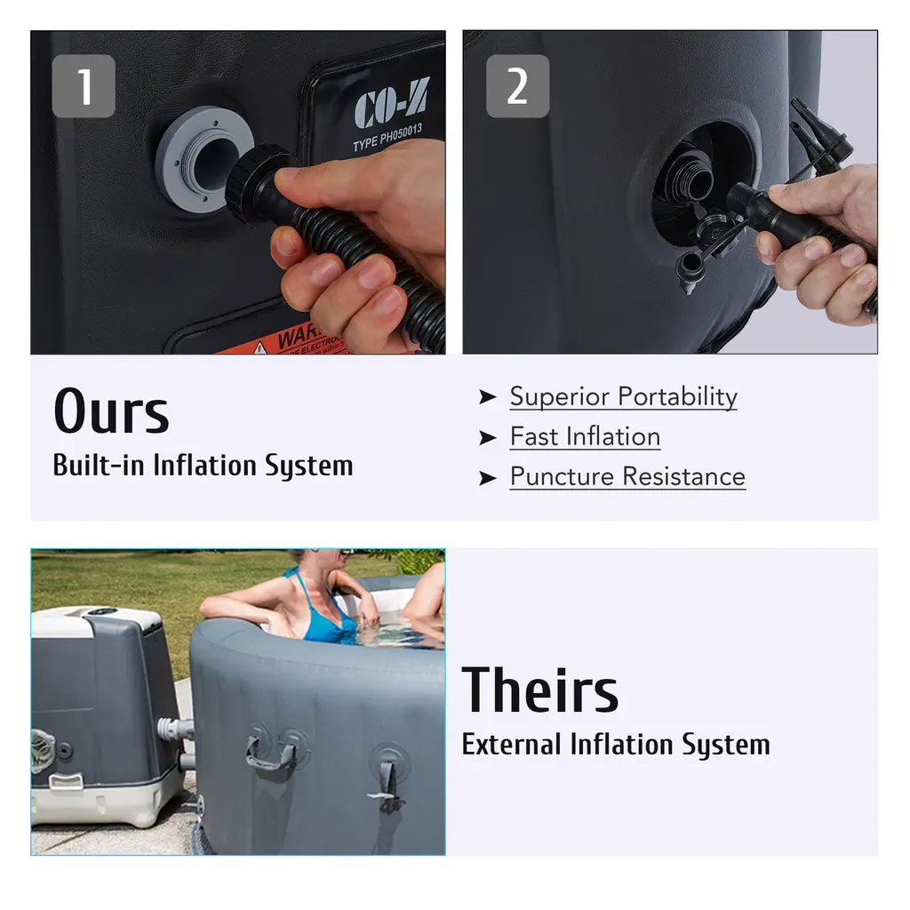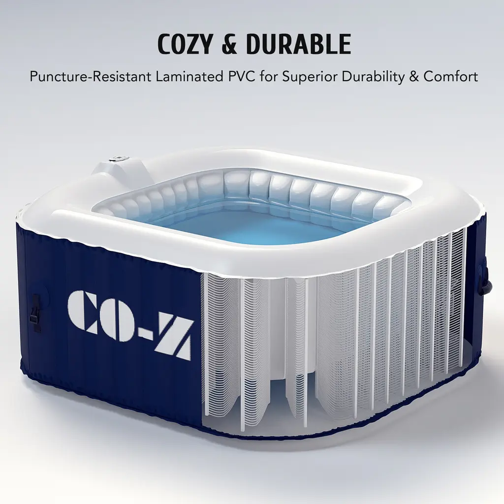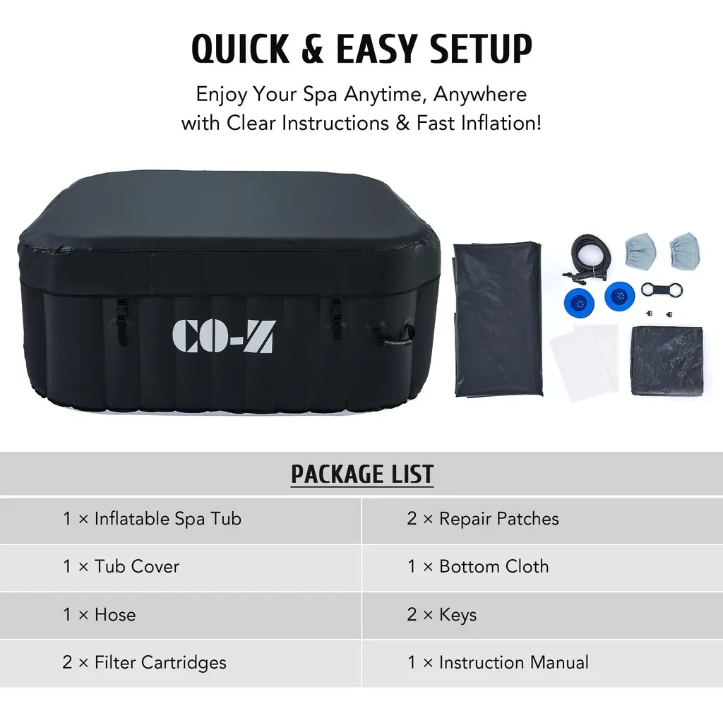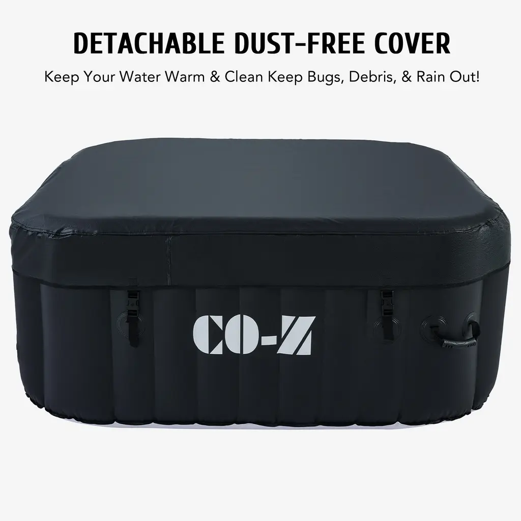 Co-Z Square Inflatable Hot Tub, 4 Person Blow Up Portable Hot Tub - Black & White