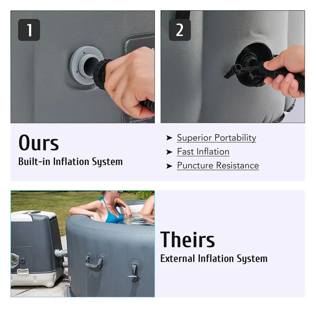 Co-Z Square Inflatable Hot Tub, 4 Person Blow Up Portable Hot Tub - Grey & White