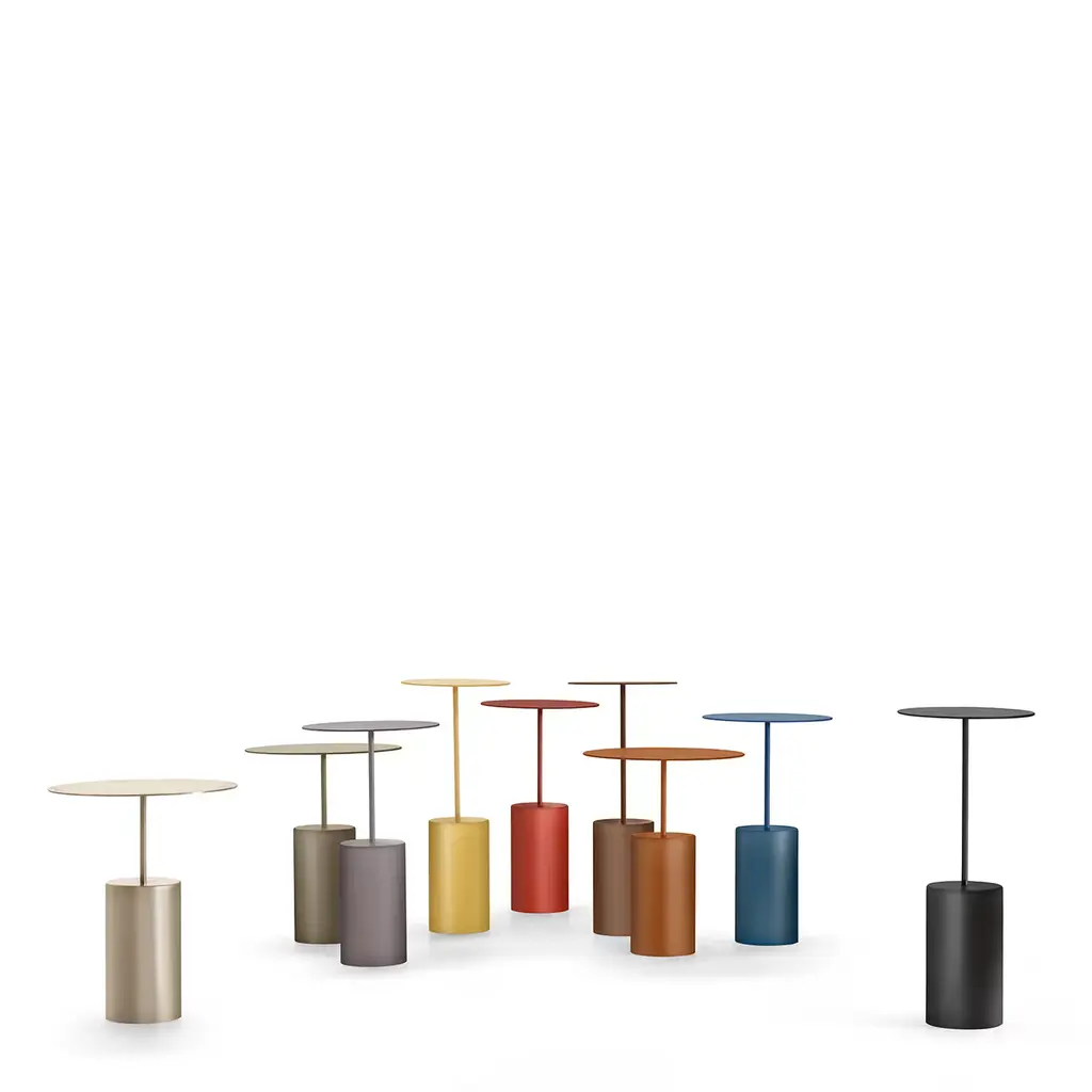 This lively side table will add a pop of color to any living decor with its vibrant, monochromatic glossy-orange look. All of its structural elements - the thin round top, the cylindrical stem, and the bold cylindrical base - are all crafted of metal and varnished through a deft oven-baked epoxy coating step that ensures great protection to the surfaces. Check all sample colors with the Concierge for a customized purchase.