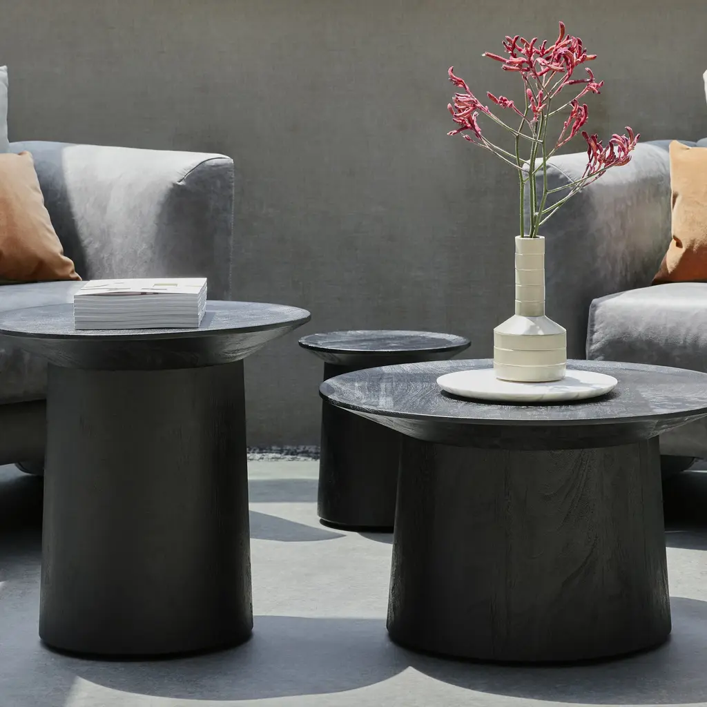 Simplicity is the key to timeless elegance and the Coco Coffee/Side Table from Blu Dot is ready for its close up with multiple table shapes that will never go out of style. Crafted from solid, blackened acacia wood, yielding a classic monochromatic design, a gently beveled edge seamlessly flows into a subtly flared base, presenting a sculptural statement that's sure to complement any modern interior scheme. This versatile table design is perfect flanking either side of a living room sofa or clustered together as a dynamic coffee table design. Highlights