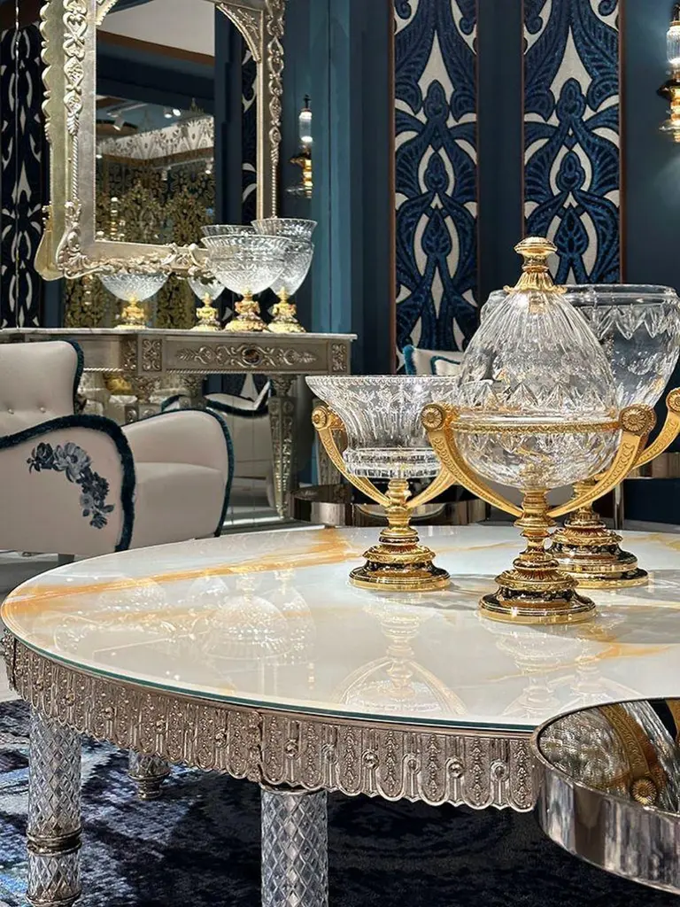 Coffee Table Iron Frame Decorations Cast Brass Leg Cut Crystal Champagne Finish