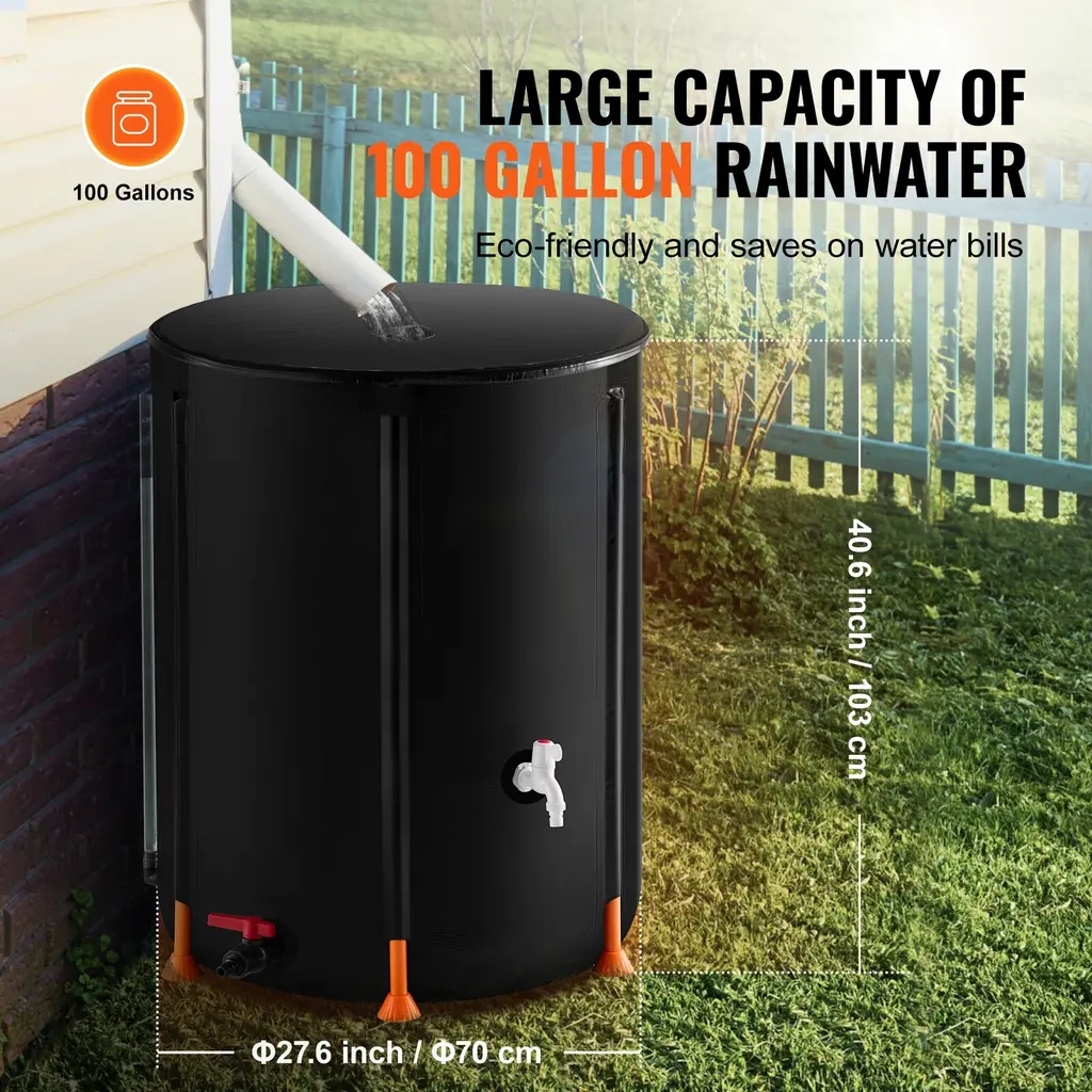 Collapsible Rain Barrel, Portable Rain Water Collection Barrel, Pvc Rainwater Collection System With Spigots And Overflow Kit - 100 Gallon