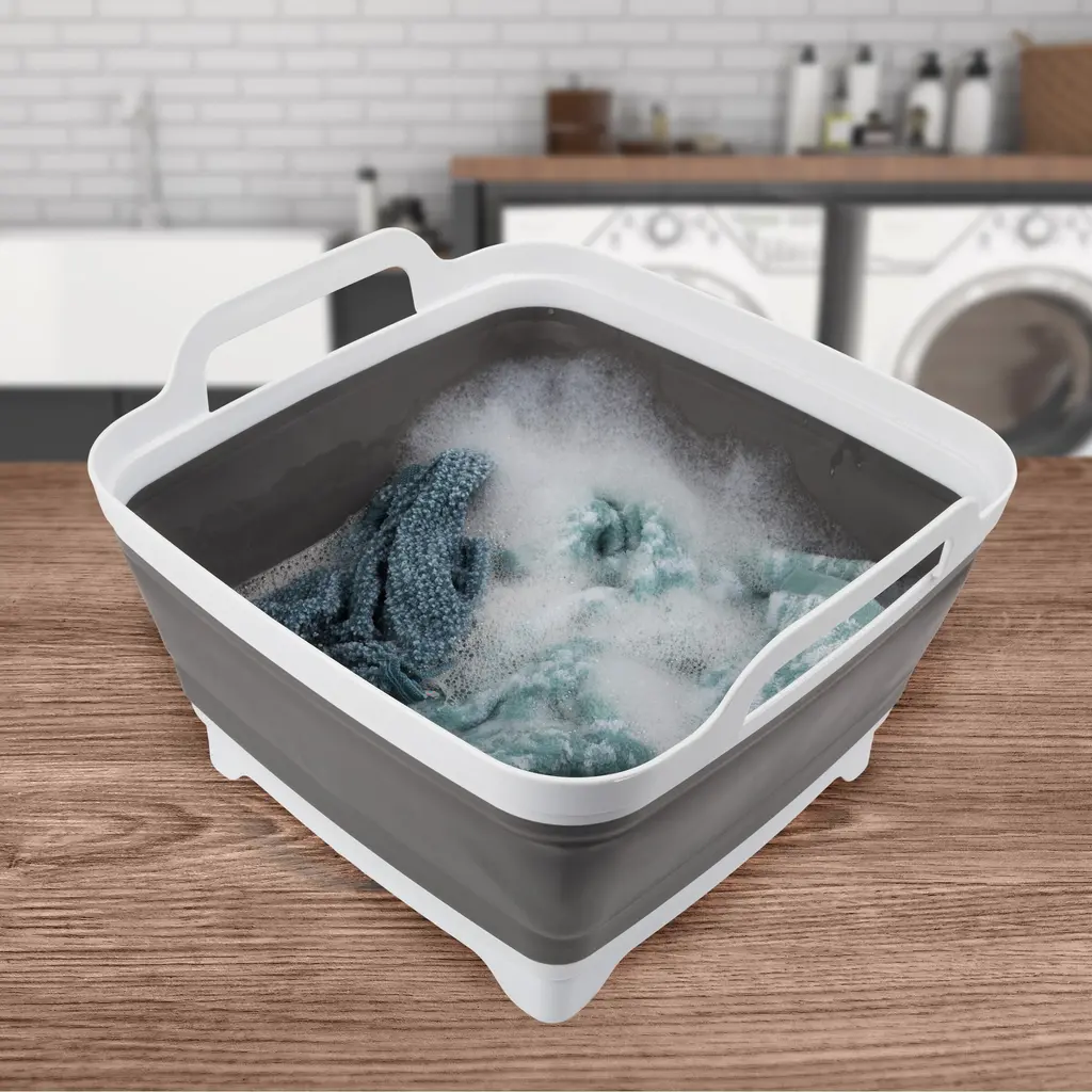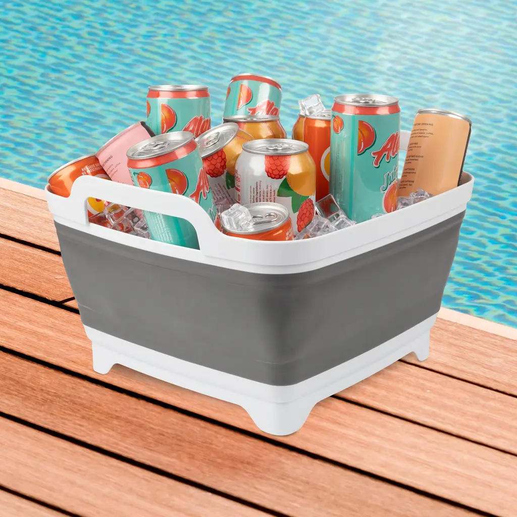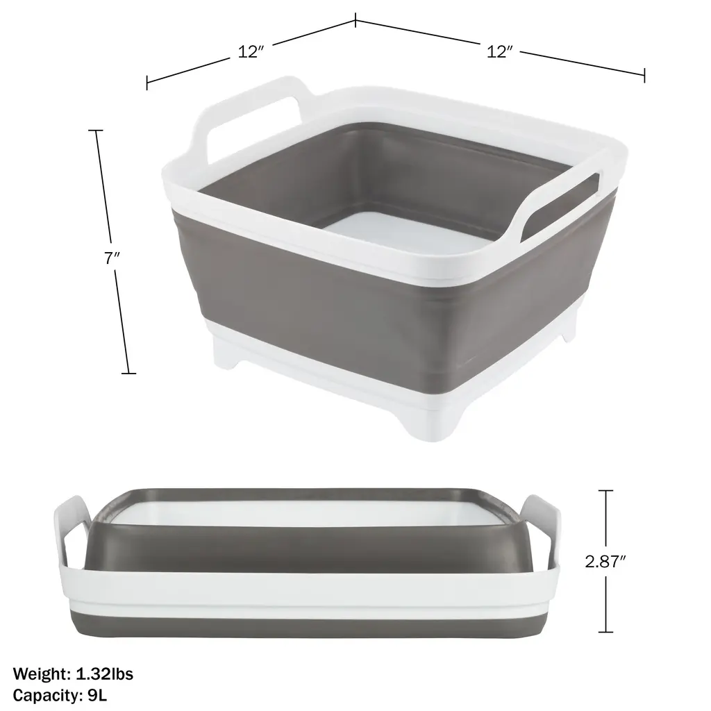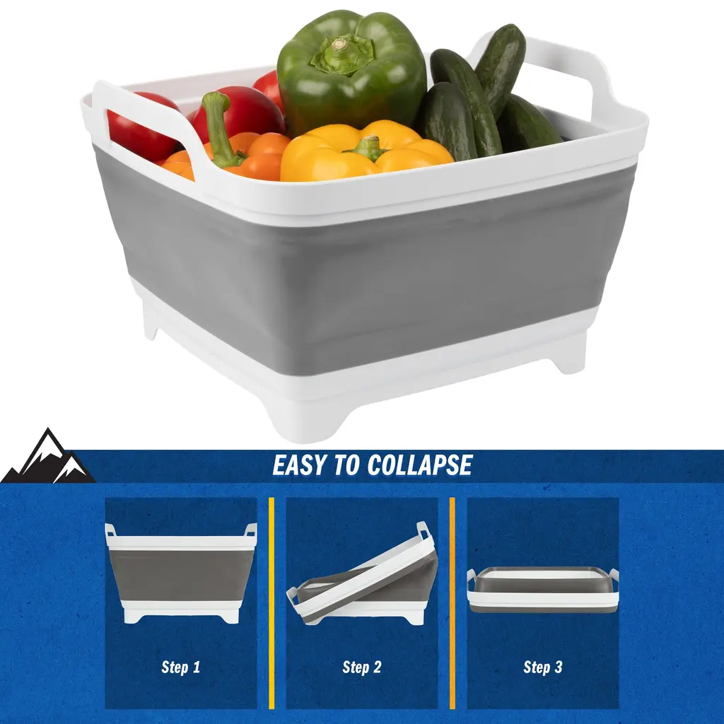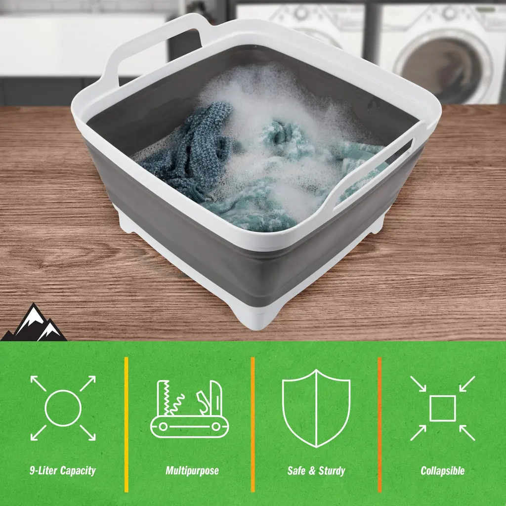Collapsible Wash Basin - 9L Portable Sink With Drain - Plastic Tub Dish Pan For Camping, Handwashing Laundry By Wakeman Outdoors - Multi-Color