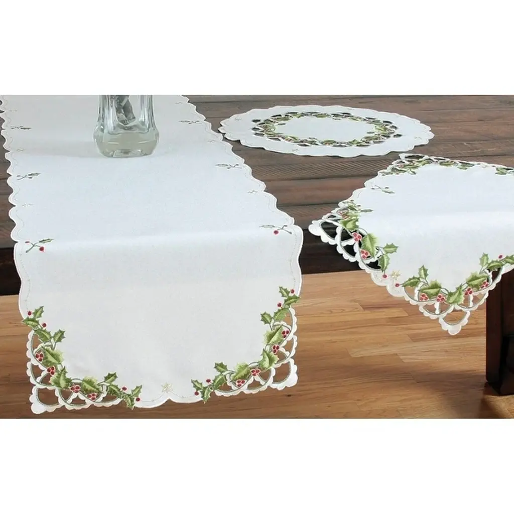 These Elaborate Candy Cane Table Linens Is A Magical Addition To Your Holiday Table. Linens Feature A White Background With A Beautifully Detailed Candy Cane, Bow And Holly Berry Design. Use Alone Or Over Coordinating Tablecloths Underneath (Sold Separately). Machine Wash. Polyester; Imported. Available Either As A Runner (68" X 12"), Or A Square (34"Sq.).