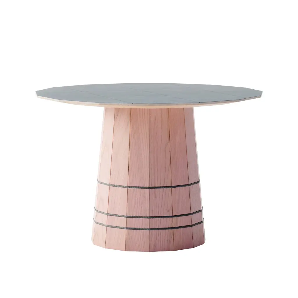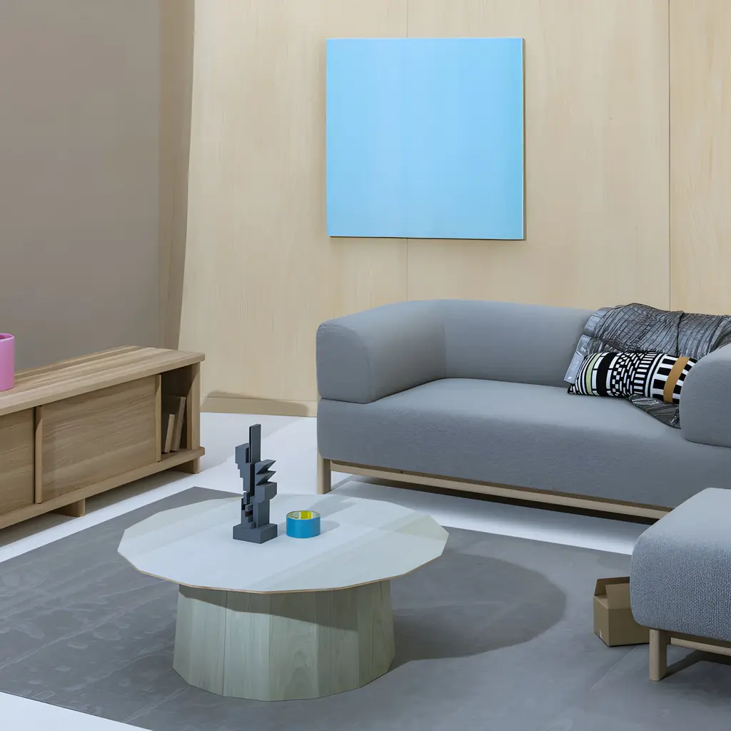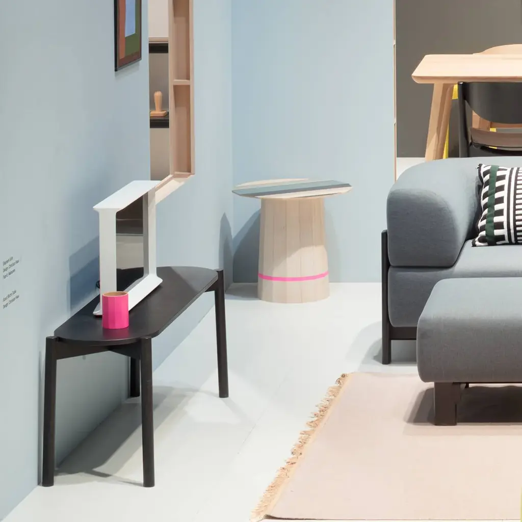 Go with one or cluster them all. However these color tables are used, they manage to serenely transform a space in part due to their muted colors, retrained pattern work and geometric shape. As major fans of Scholten & Baijings, we were over the moon at their collaboration with Japanese heritage brand Karimoku New Standard. The Amsterdam duo are only among the latest to join the KNS. Some 70 years into producing quality furniture with a MidCentury sensibility, Japanese brand Karimoku decided in 2009 to write a new chapter in design by engaging in collaboration with a young crop of international talent and rechristening itself as Karimoku New Standard. Solid Japanese hardwoods such as maple, chestnut and oak are the basis of a line informed by a cultural understanding of craftsmanship coupled with innovative technologies in terms of manufacturing and sustainability. To preserve and revitalize Japanese forests, the hardwood used is from low-diameter trees, long underused. Made of chestnut, the Colour Wood Collection includes these tables and the Colour Wood Bins (oversized canisters also at A+R). Each piece is distinguished by the soft pastels to fluourescent pink that are a trademark colorway of Scholten & Baijings. The lines and patterns are layered on these pieces for a modern take on traditional Japanese shapes and techniques.