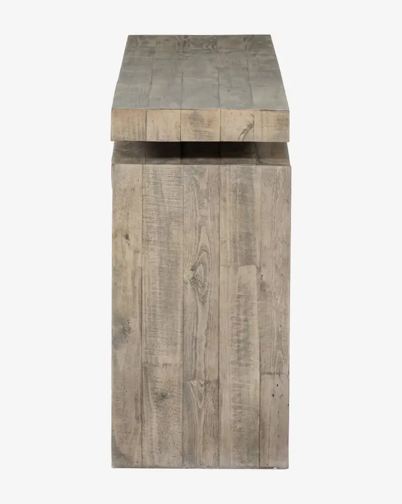 In a study on balance, the Colter Console Table uses simple lines to create a streamlined, modern look. With an emphasis on negative space, this piece creates a sculptural feel in the entryway, and is crafted from reclaimed wood for a natural, organic feel that complements its design.