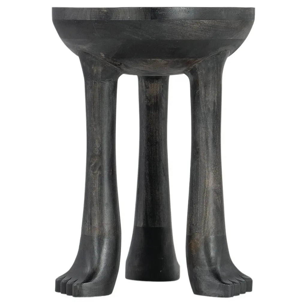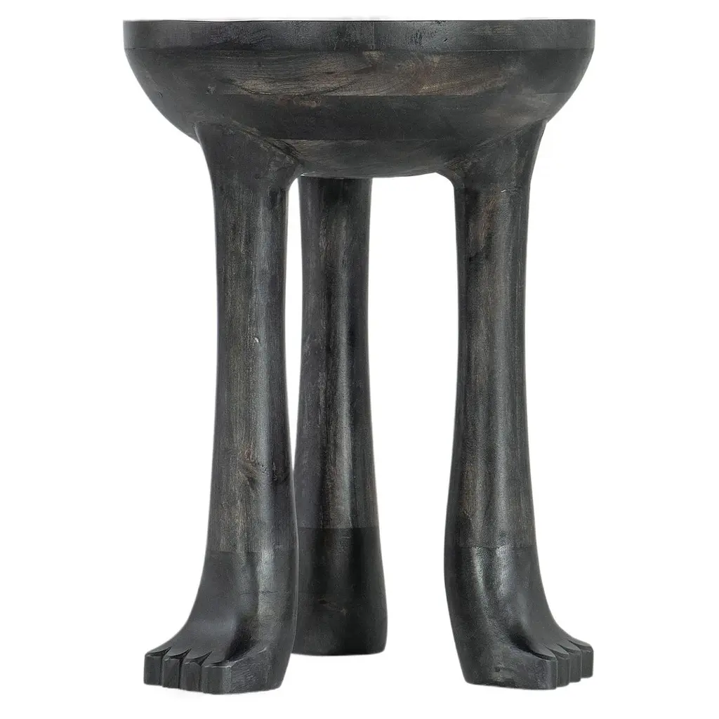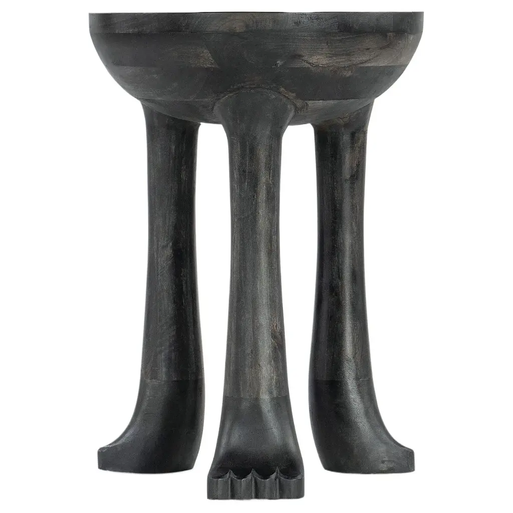 With a tribal and primitive vibe, the novel Yeti Spot Table features three legs with a claw foot design. Crafted of Mango Solids, it has a convenient compact 17��� x 17” round footprint.