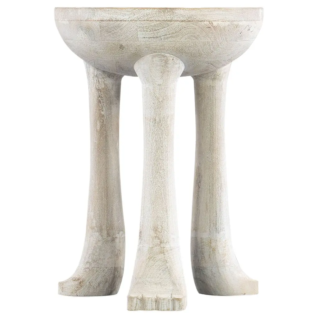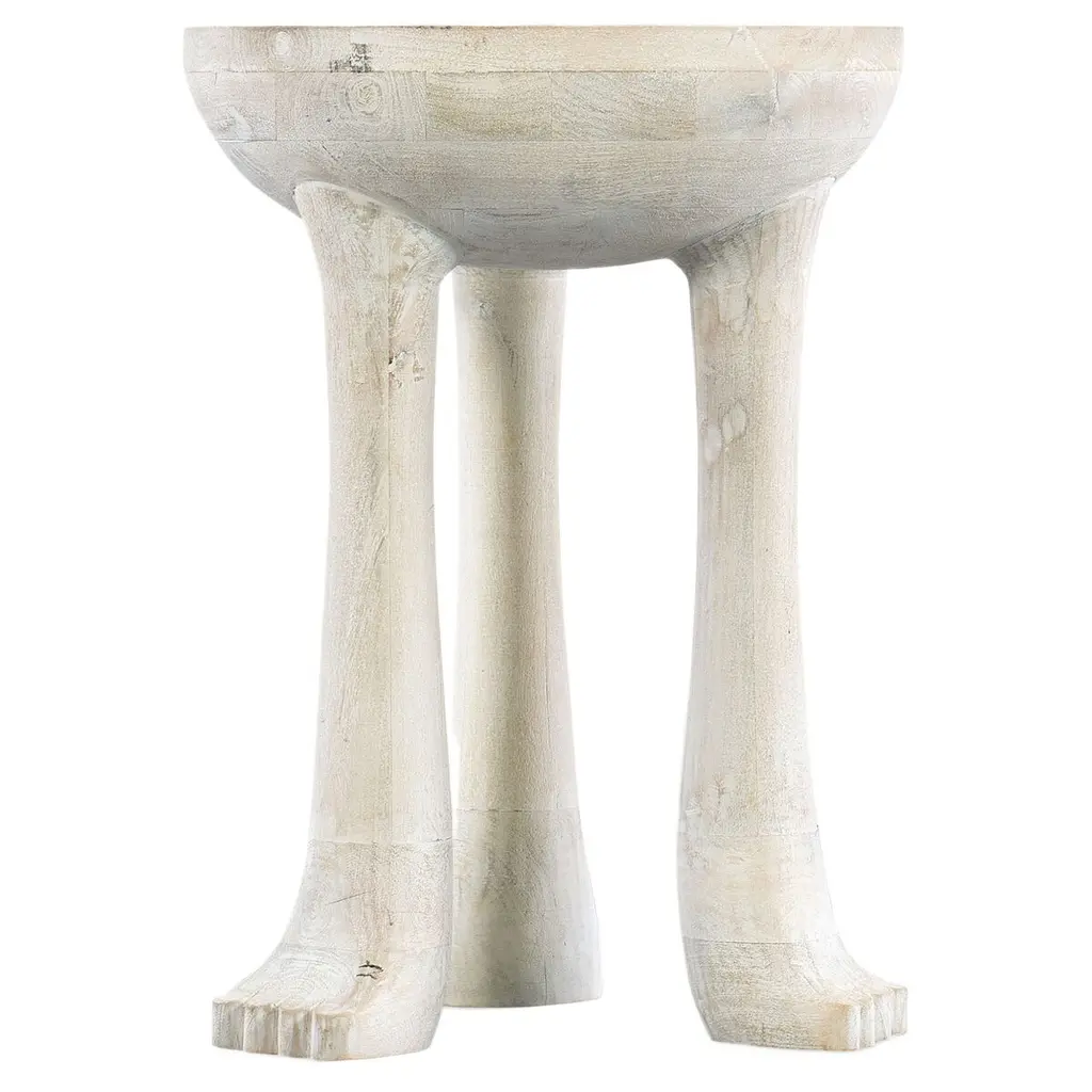 With a tribal and primitive vibe, the novel Yeti Spot Table features three legs with a claw foot design. Crafted of Mango Solids, it has a convenient compact 17��� x 17” round footprint.