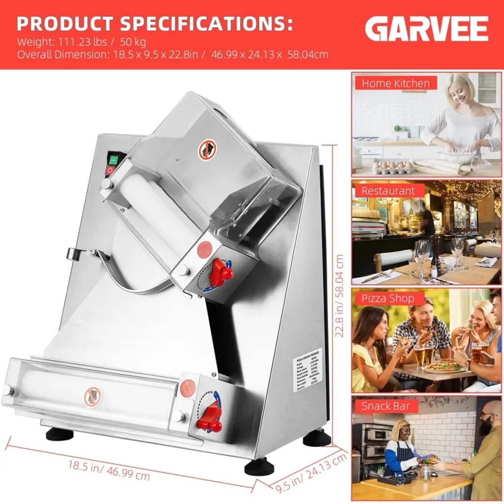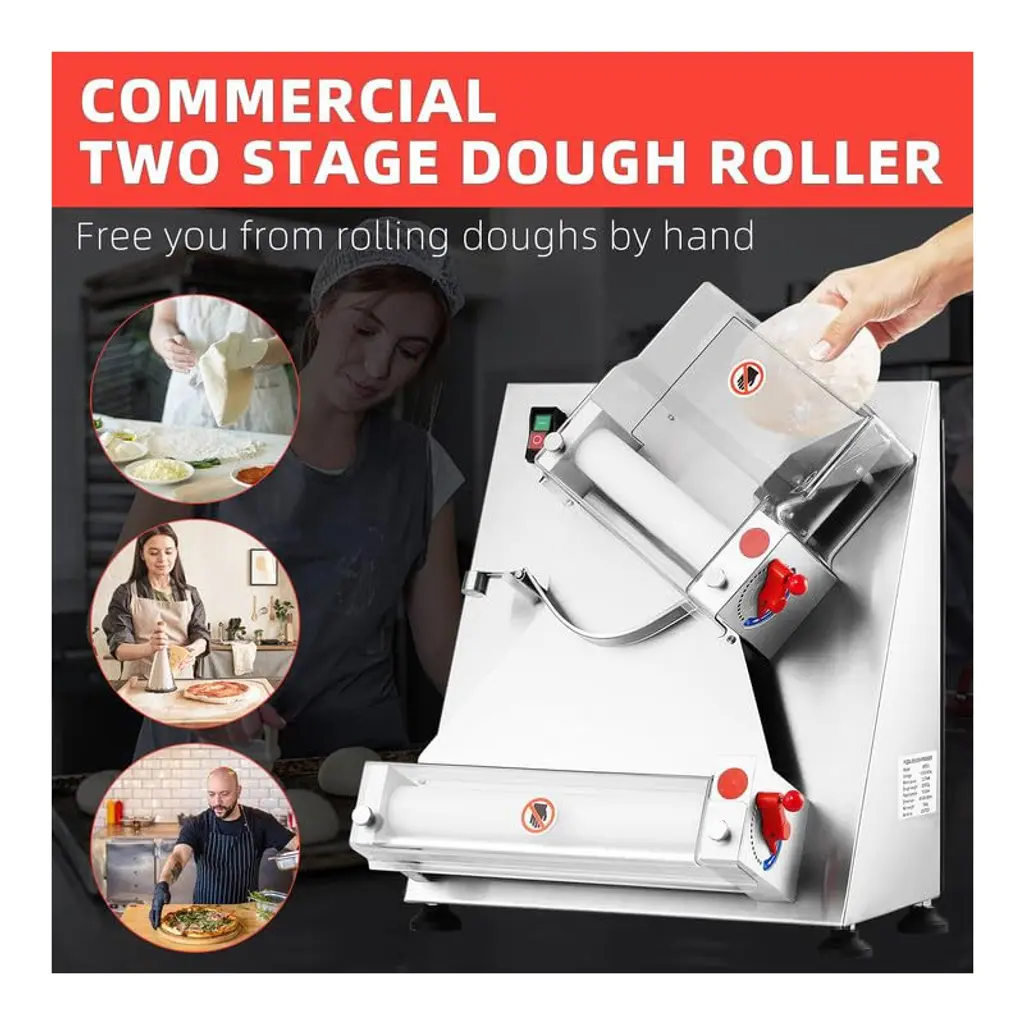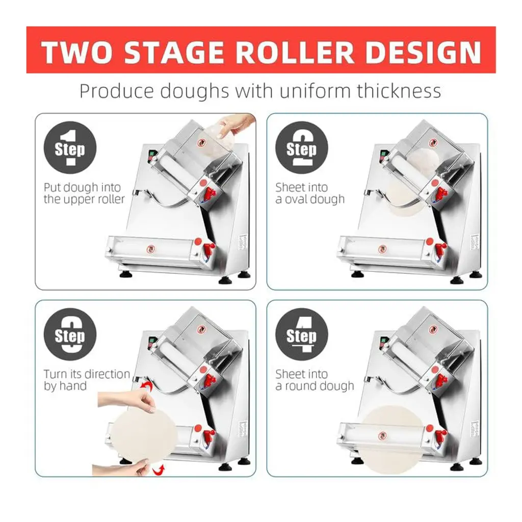 Commercial Pizza Dough Roller Sheeter, Max 12", Stainless Steel, Suitable For Noodle, Pizza Bread And Pasta Maker Equipment