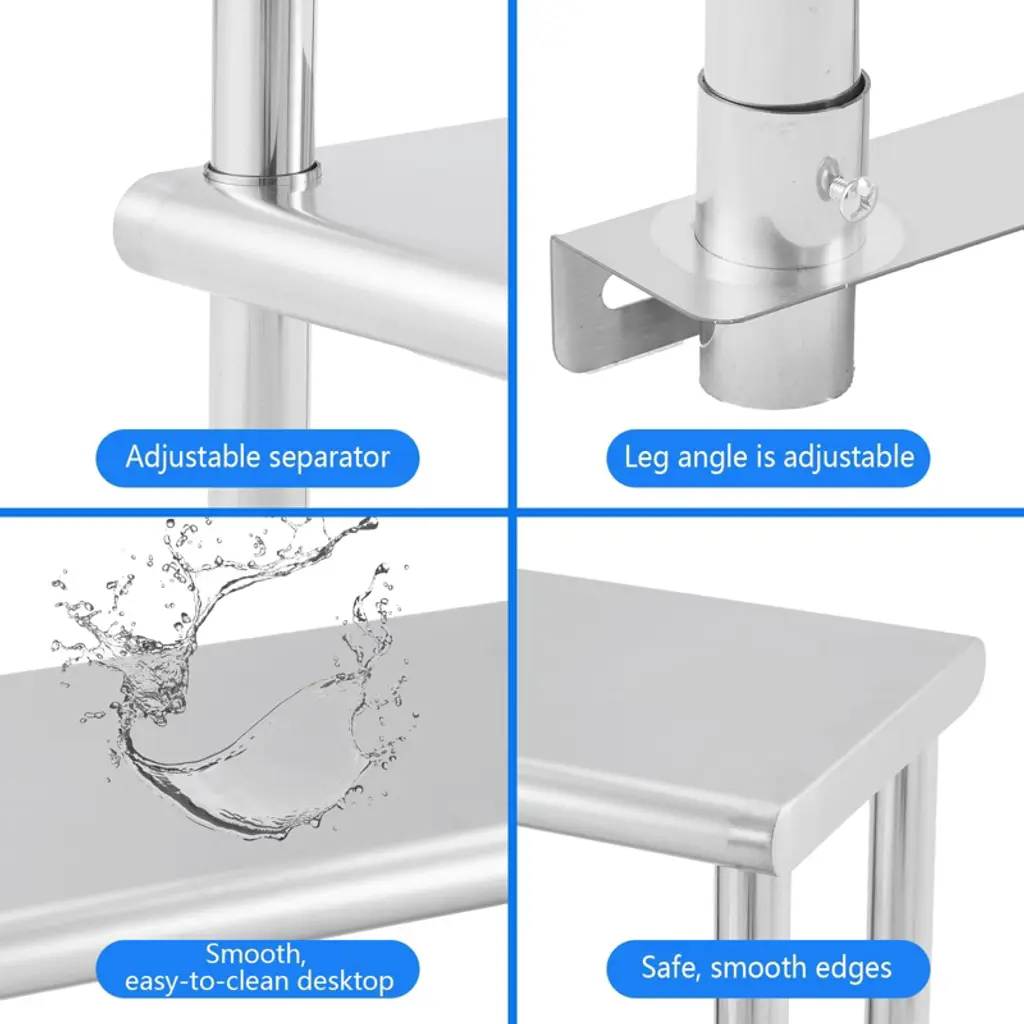 This commercial work table features a robust stainless steel surface for long-lasting durability and easy maintenance. Its spacious design and practical bottom shelf offer ample storage and efficient organization for all your tools and supplies. Outfitted with casters and a backsplash, this workstation provides both mobility and cleanliness, making it ideal for restaurants, home kitchens, workshops, and more. Simple installation ensures your workspace is ready in no time.
