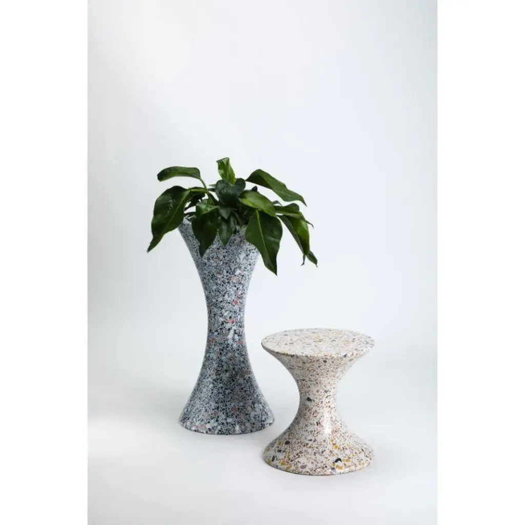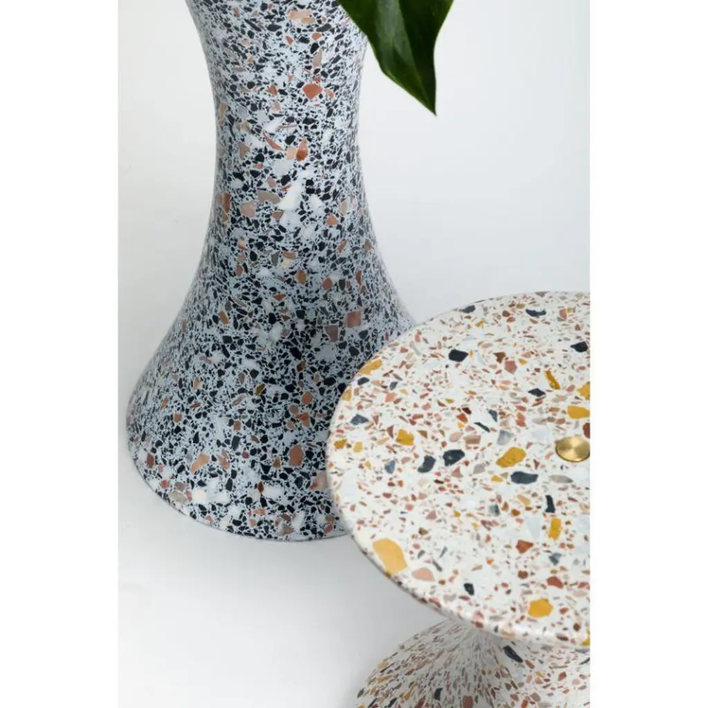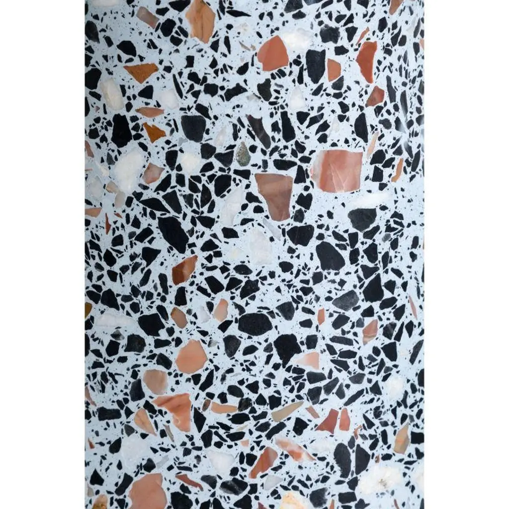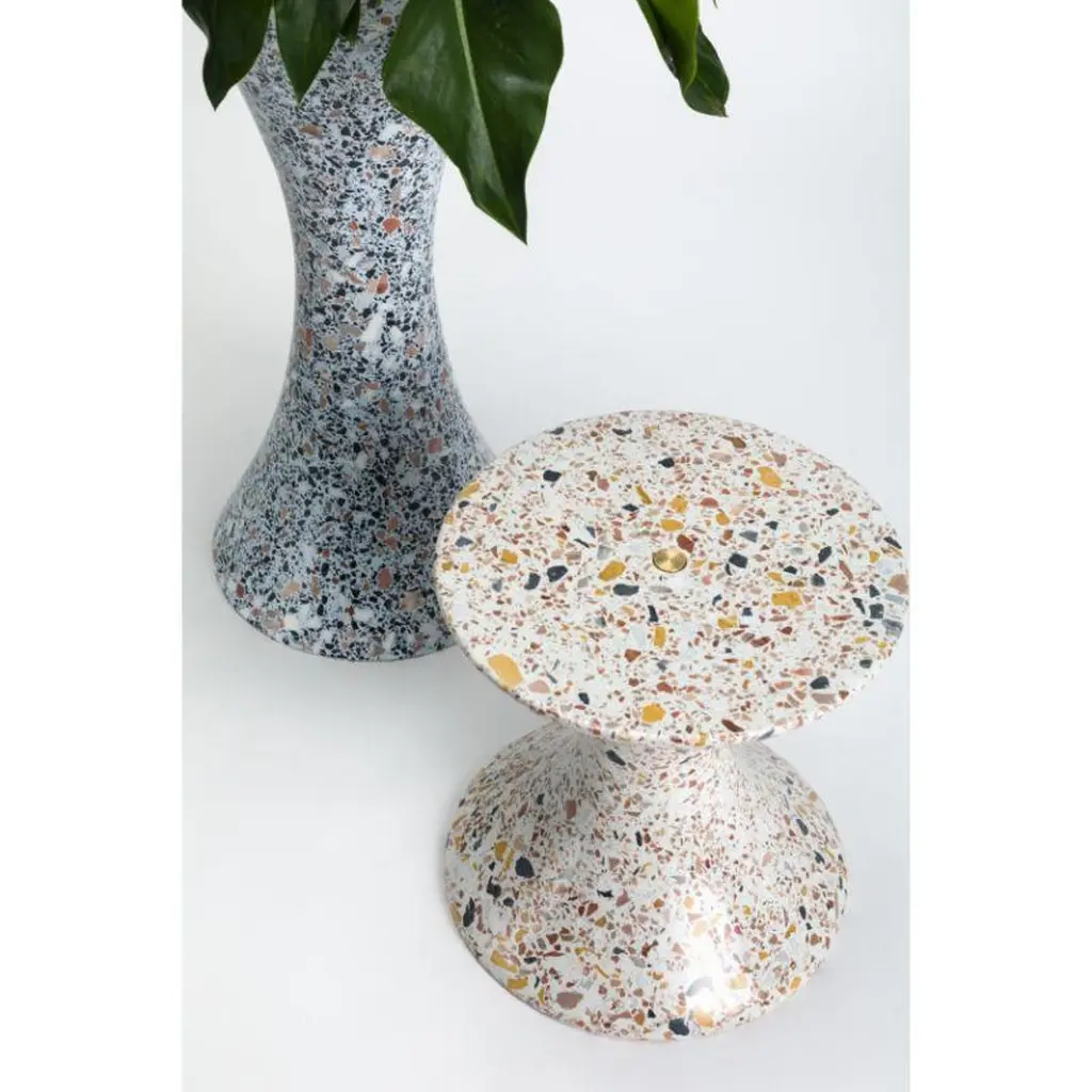 Confetti Table, Medium, Midnight by Laun ( Handmade in Los Angeles )Tables CollectionDimensions: H.51 D.36 W.36 cmMaterials: Terrazzo In Midnight or ChalkAlso Available: Confetti Table Small, Muhly Table, custom sizing, and finishes upon request, please contact usThe Confetti renders the Classic shapes of midcentury poolside furniture in an unexpected Material, real terrazzo with a brass button.LAUN is a Los Angeles-based design firm focused on enriching the built environment through architecture, furniture and creative collaborations.LAUN Studio prioritizes curiosity and exploration as the founding design tenants in architecture and interiors.LAUN was founded in 2018, when friends Rachel Bullock and Molly Purnell brought together their backgrounds in woodworking, metal working and architecture to build a practice of enduring spaces and products. The company’s objectline harnesses the unique talents of Los Angeles based manufacturers to Craft timeless, heirloom quality furniture suitable for both indoor and outdoor use.