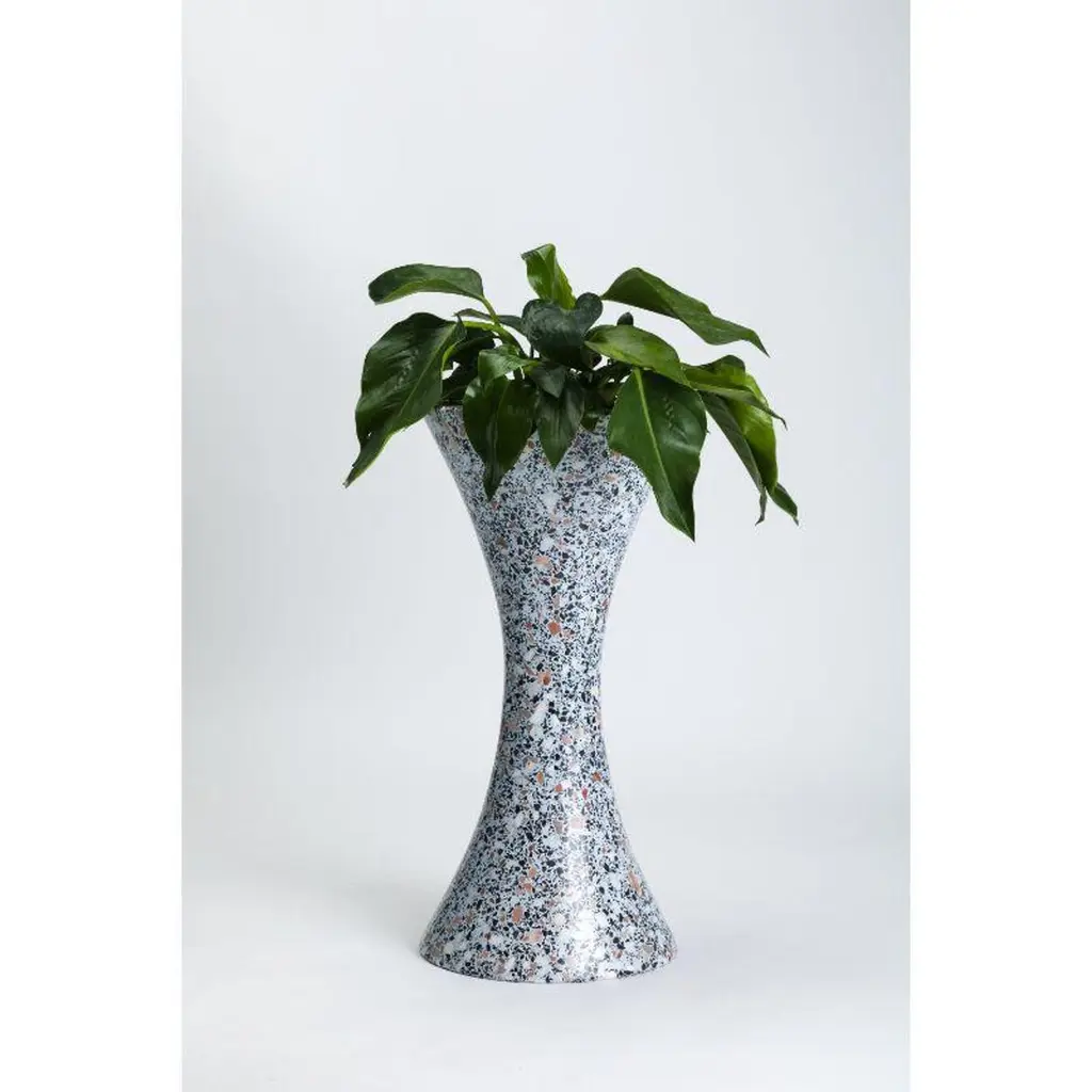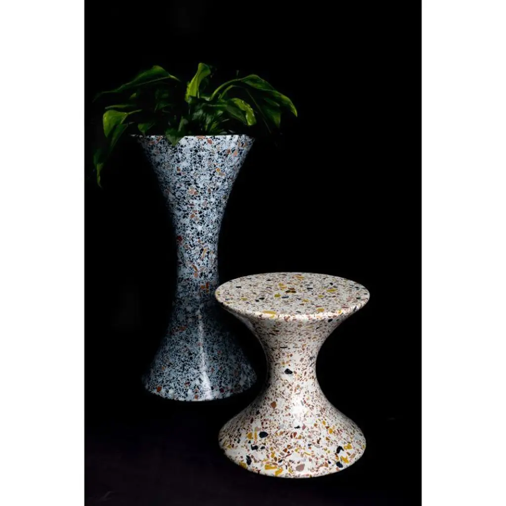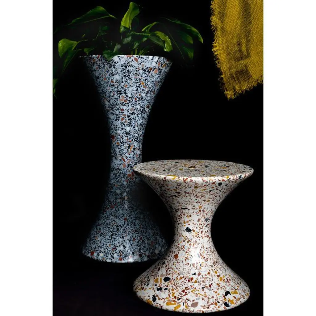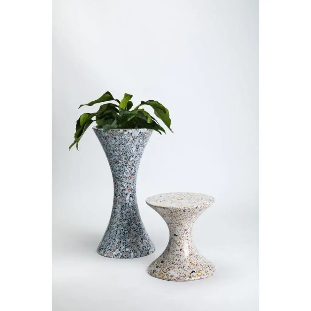 Confetti Table, Medium, Midnight by Laun ( Handmade in Los Angeles )Tables CollectionDimensions: H.51 D.36 W.36 cmMaterials: Terrazzo In Midnight or ChalkAlso Available: Confetti Table Small, Muhly Table, custom sizing, and finishes upon request, please contact usThe Confetti renders the Classic shapes of midcentury poolside furniture in an unexpected Material, real terrazzo with a brass button.LAUN is a Los Angeles-based design firm focused on enriching the built environment through architecture, furniture and creative collaborations.LAUN Studio prioritizes curiosity and exploration as the founding design tenants in architecture and interiors.LAUN was founded in 2018, when friends Rachel Bullock and Molly Purnell brought together their backgrounds in woodworking, metal working and architecture to build a practice of enduring spaces and products. The company’s objectline harnesses the unique talents of Los Angeles based manufacturers to Craft timeless, heirloom quality furniture suitable for both indoor and outdoor use.