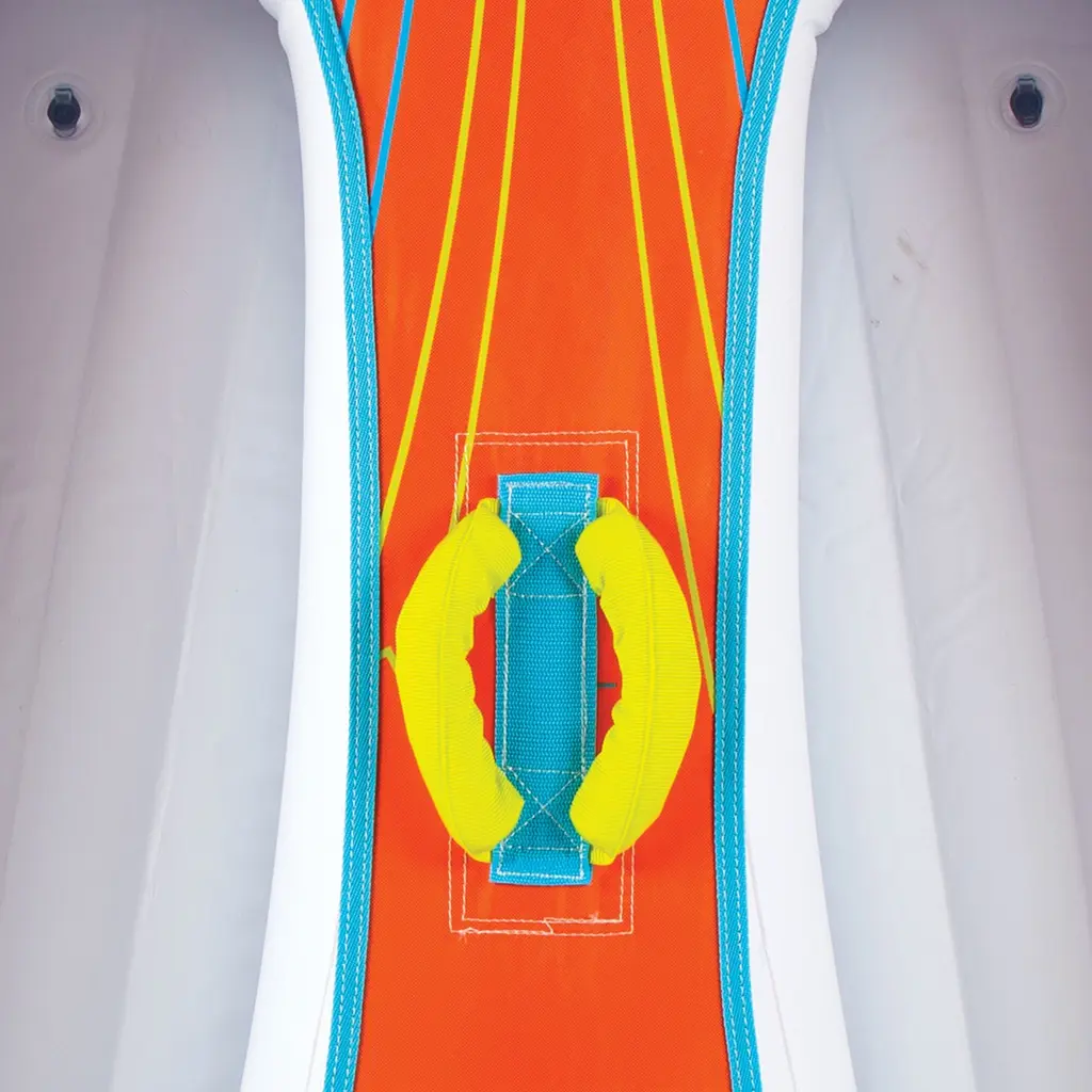 Have some daring fun this summer. Hook up the Connelly Double Trouble 2-Person Towable Tube to your boat, hop in with a buddy, and ride the wake. The Double Trouble is a partially-covered, double-rider cockpit-style tube with a rounded bow for effortless starts, large side gussets for extra stability, and a low center of gravity for safe riding. The large squared-off stern keeps the inner tube stable on turns and in rough conditions. Get on the water quickly. This large, 66- by 72-inch inner tube comes with Boston valves for easy inflation. The quick-connect tube rope attaches to your boat's tow rope in seconds. This inflatable water tube keeps you comfortable as you ride with 4 padded handles with knuckle guards, seat cushions, and a mesh bottom that drains excess water. Made to last summer-after-summer, this boat towable tube sports a 420D nylon cover and heavy-duty air bladder. Enjoy a summer full of adventures on the water with the Connelly Double Trouble 2-Person Towable Tube. Hold on tight and enjoy summer boating at the lake with this 2-person inflatable inner tube Partially covered, double rider cockpit-style inner tube with 4 padded handles with knuckle guards, seat cushions, and a mesh bottom that drains excess water Large, measures 66 inches long by 72 inches wide (deflated) and comes pre-assembled Get started quickly with easy-to-inflate Boston air valves and quick-connect tube rope attachments Made to last with 420D nylon cover and heavy-duty air bladder Includes peel and stick repair kit Boston valves make for easy and quick inflation Color: Orange, blue Dimensions, deflated (L x W): 66 x 72 inches Manufacturer warranty: 1-year warranty