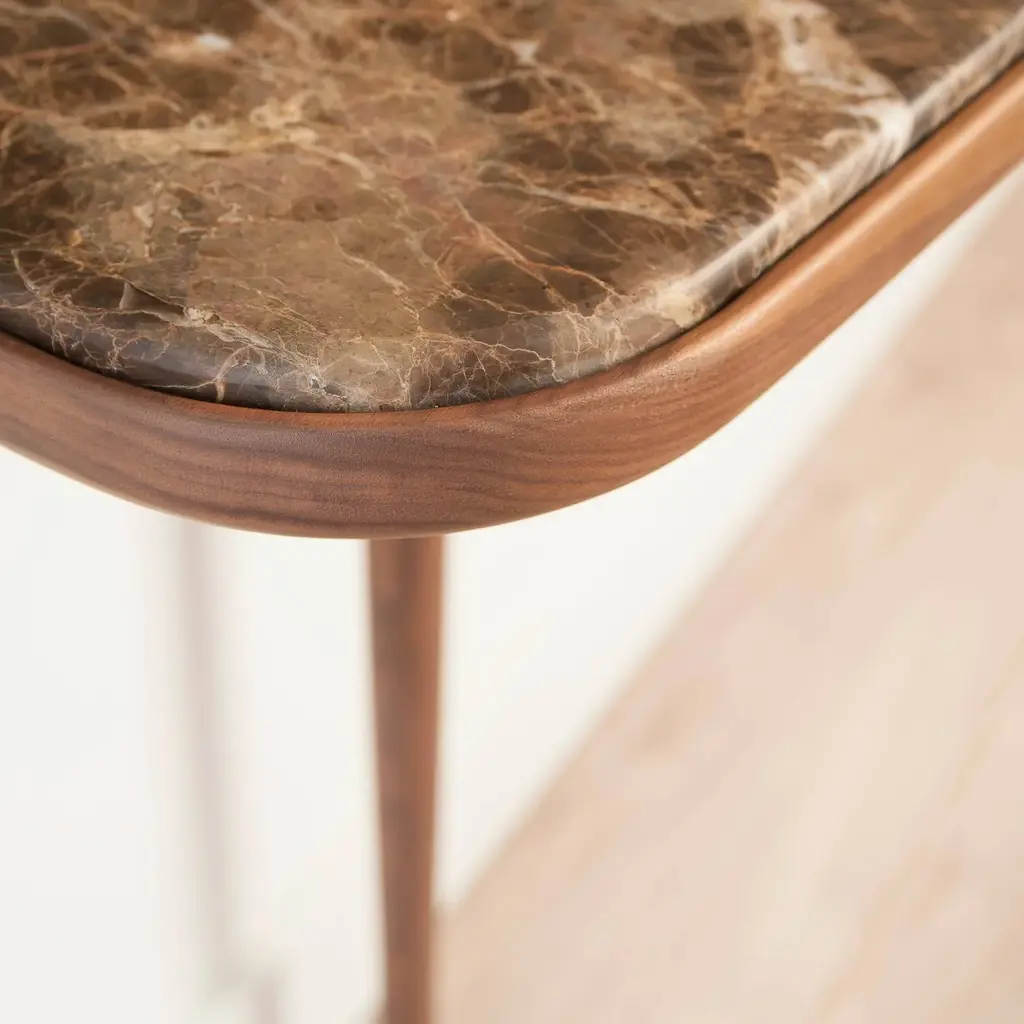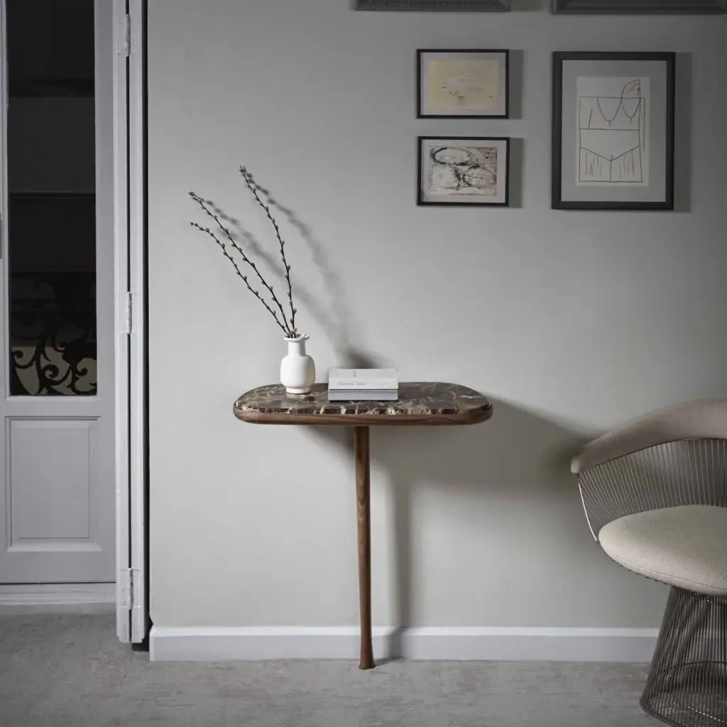 Nomon Home plays an amusing visual parlor game with Consola, which appears to stand on just a single leg. Actually affixed to the wall with an invisible mount, the sleek console is crafted in solid walnut. For even more verve, there's an optional alternative of sumptuous marble tabletop in a choice of brilliant shades.