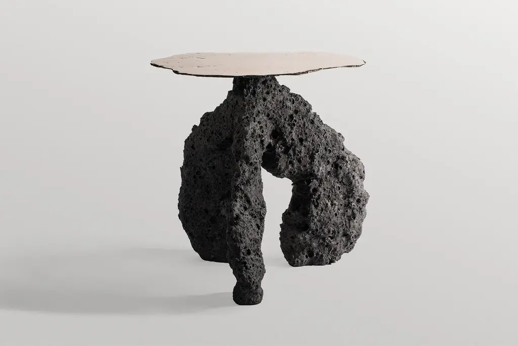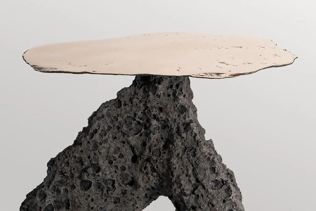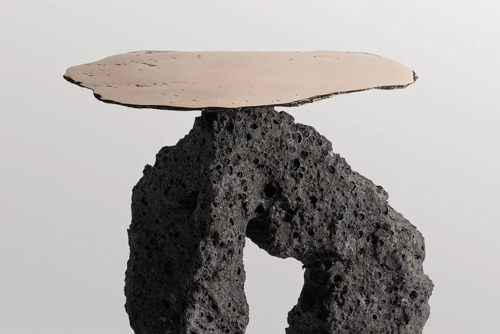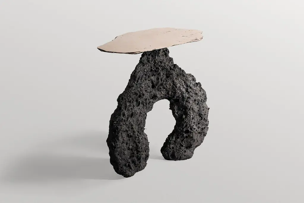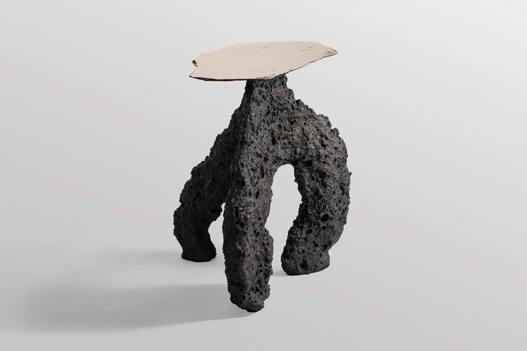 Geoprimitive 126 Occasional Table by Niclas WolfUnique Piece.Dimensions: D 38 x W 48 x Ø 50,5 cm.Materials: Ceramic and bronze.GEOPRIMITIVE_ is a design series that compares and connects thePrecambrian, the birth of our home planet and today‘s geologicalhuman-centric Anthropocene era.A new clay has been developed and produced, especially for theGEOPRIMITIVE_series in collaboration with ceramic engineers. Thecomposition and thermic qualities of the clay, including under extremeatmospheric conditions allow for these unique tectonic sculptures.The tectonics of the objects characterize the structure, the constructiveelements relate to the laws of the structure inherent in the work ofart, its statics, its self-assembly, and the recognizably of loadbearing,burdening and supporting parts.Each object is unpredictable and without repetition. Each objectis unique.In his daily life, Niclas Wolf is deeply connected to the natural world. By searching and recording all the elements that touch him, he designs the earth‘s resources so that the invisible becomes material.His work is all about experimentation, all of his pieces are filled with layers made up of everything that surrounds them.Tectonic structures and geological phenomena are great sources of inspiration. The collections are the speculative results of an ongoing investigation into how formative processes in nature can be adapted into creative methods.