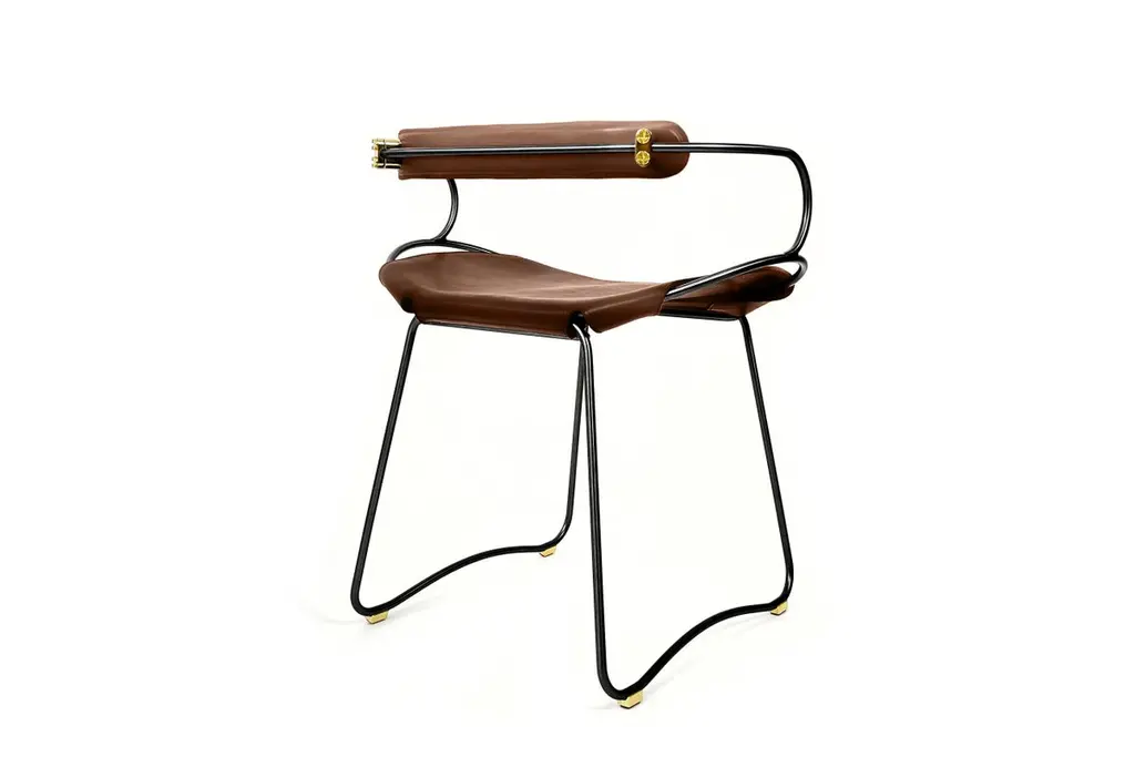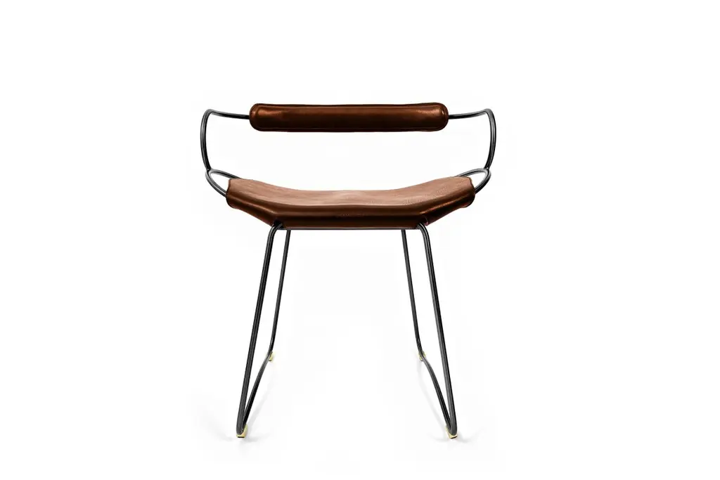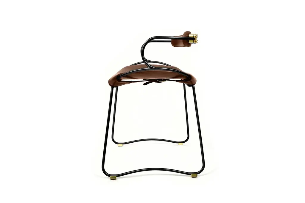The Hug contemporary table stool with backrest is designed and conceived with a light aesthetic, the slight oscillation of the steel rod of 12 mm is complemented by the flexibility of the double 3.5 mm thick leather. When sitting in this furniture you feel an enveloping sensation, like being hugged, since the weight of the body is distributed evenly. Each unit becomes a refuge of visual and ergonomic wellbeing.Our Hug Collection is inspired by the organic lines of a landscape, the curves of nature, and the imaginary silhouette of the wind inspire this collection of organic forms, almost like metallic sculptures. All pieces are done with cold bended steel rods, polished, nickel plated, colored by electrolysis, and lacquered. The process of polishing and lacquering the steel, goes through a manual and delicate chroming process, which gives its final and unique metal color finish. This precise technique gives a uniform metallic finish of minimum 50 microns over the entire Surface. Our metal finishing has successfully passed a corrosion resistance test in a salt spray chamber according to UNE-EN ISO 9227: 2017 and UNE-EN ISO 1456: 2010. Our signature screws are made with brass turning lathed, polished, and lacquered, these are the pieces that fix the saddle leather to the metal frame.Leathers are Spanish hides vegetable tanned. We use premium saddles in multiple colors to adjust to your taste and interior needs. This traditional vegetable dying and tanning method is an organic technique that relies on natural tannings from bark or plant tissues. The use of oils and natural fats give the leather a distinctive flexibility and texture, allowing it to be molded, retain its shape and age graciously.All skins are carefully selected from food industry, with a minimum thickness of 3.5 mm / 0,02 in, using the part of the animal's shoulder, which allows for larger pieces and uniformity, even though signature wrinkle from the animal’s neck may be recognizable. The vegetable tanning is a traditional and artisan treatment, which is respectful to the environment. Even with careful selection natural marks as a result of the contact with other animals, the age, origin and characteristics of the skin, or even the season in which the tanning takes place cannot be avoided. We still believe that these factors only add authenticity and uniqueness to every piece. Our leather parts are made with double saddles, always showing the top side of the hides that presents the better quality.Customization options.With the aim of creating customized pieces, clients can select from the various metal finishes, and leather colors to create pieces that complement their home décor. Leather colors available, black, navy, dark brown, cognac and natural tobacco, and steel polished finishing available, aged brass, black smoke and aged silver.Normally we use tone on tone threats for stitches, but client can select a contrast option, being possible to select any color to make a unique piece for the project it belongs. The finish on the edges of our leather components are sanded and hand painted. We have the option of select an alternative color if not tone on tone will be applied.Our collections are made to full fill home spaces where to gather and enjoy great conversation with families and friends. Occasional furniture for exquisite homes, from cottages to exclusive resorts. Our product is understood as a sculptural piece of design, as an art object to be displayed at different house spaces as library, bar, living, foyer, bedroom, powder, meeting, grand or great room.The different finishes options make the furniture perfect combinations on diverse styles, from rustic mountain home, a small cottage, a ski lodge retreat, or industrial a minimalist look. The Hug contemporary table stool with backrest offers a light and aesthetically pleasing design, characterized by the slight oscillation of the 12mm steel rod and the flexibility of the double 3.5mm thick leather. Sitting in this furniture provides an enveloping sensation, akin to being embraced, as the weight of the body is evenly distributed. Each unit serves as a refuge, promoting both visual and ergonomic well-being.Inspired by the organic lines found in nature's landscape, the Hug Collection showcases organic forms reminiscent of metallic sculptures. Crafted with cold-bended steel rods, polished, nickel-plated, colored by electrolysis, and lacquered, each piece undergoes a meticulous and delicate chroming process, resulting in a final and unique metal color finish. This precise technique ensures a uniform metallic finish of at least 50 microns across the entire surface. Our metal finishing has successfully passed corrosion resistance tests in a salt spray chamber, adhering to UNE-EN ISO 9227: 2017 and UNE-EN ISO 1456: 2010 standards. Our signature screws, made with brass, are turned, polished, and lacquered, serving as essential components that secure the saddle leather to the metal frame.The leathers used in our stools are Spanish hides that undergo vegetable tanning. We offer premium saddles in multiple colors to accommodate various interior preferences. Our traditional vegetable dyeing and tanning method is an organic technique that relies on natural tannings extracted from bark or plant tissues. Oils and natural fats are applied to the leather, imparting a distinctive flexibility and texture that allows it to be molded, retain its shape, and age gracefully.Each skin is carefully selected from the food industry, with a minimum thickness of 3.5mm / 0.02in, utilizing the shoulder part of the animal, which enables larger and more uniform pieces. While the signature wrinkle from the animal's neck may be recognizable, it adds to the authenticity and uniqueness of each piece. Our vegetable tanning process is traditional and artisanal, reflecting our commitment to environmental sustainability. Despite careful selection, natural marks resulting from the animal's interactions with ot