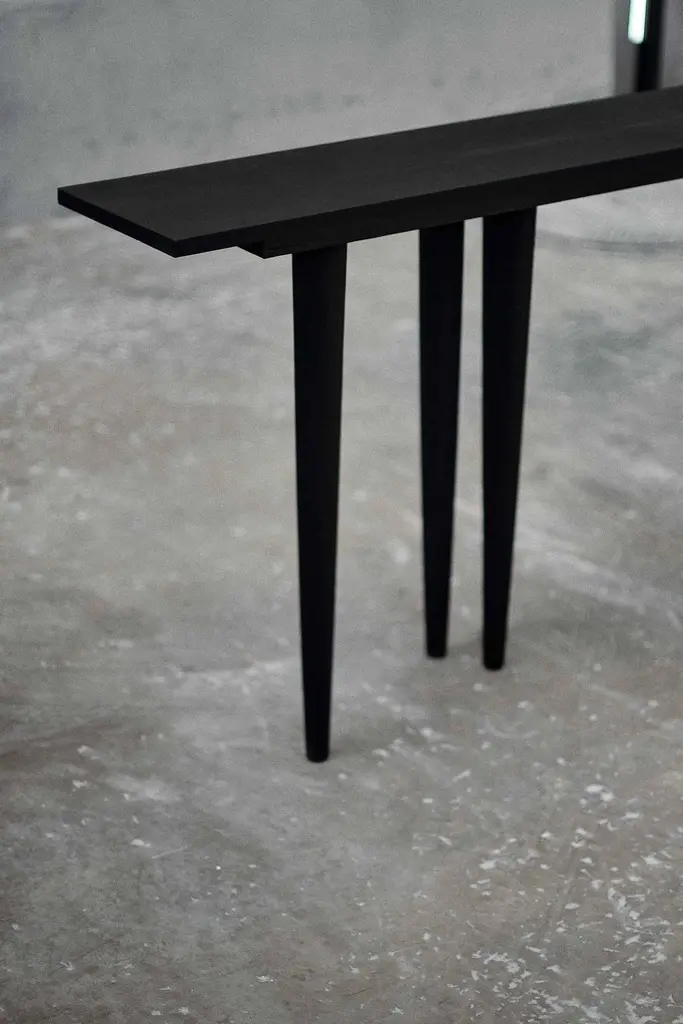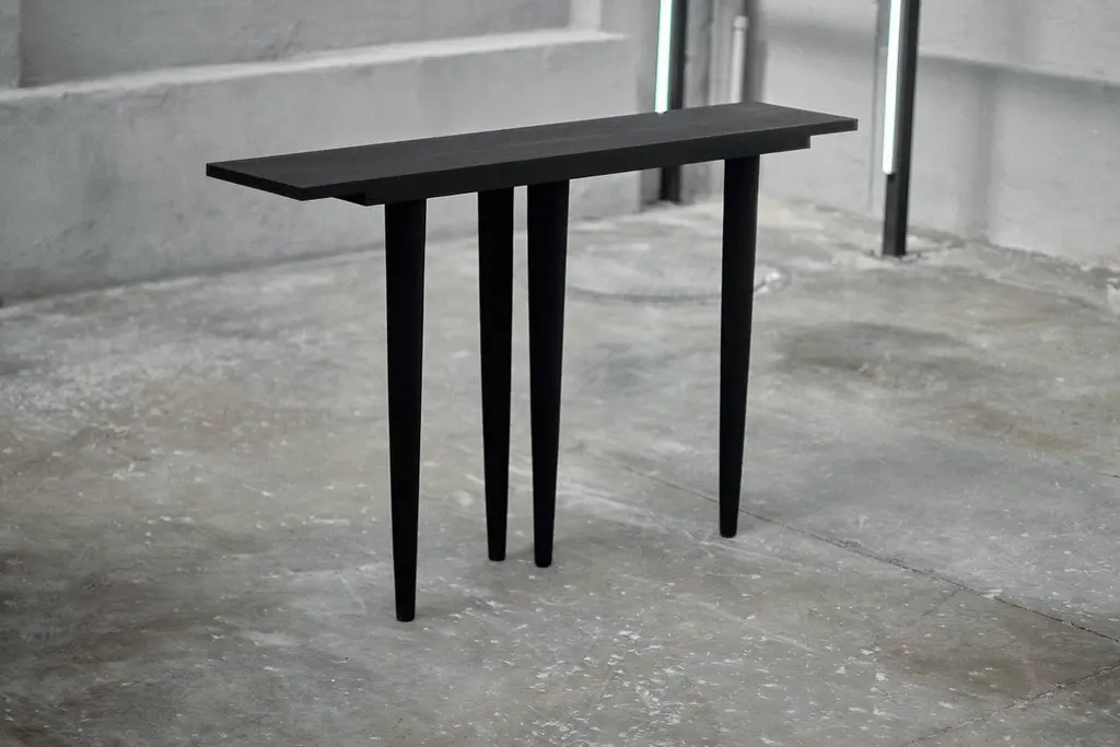 Customizable console table BORO by Camilo Andres Rodriguez Marquez (aka CarmWorks)Solid oak or cedar / Burnt wood or natural Standard size: H 80 x 120 x 30 cm (customizable) Each piece is made to order and hand crafted by the artist. --Camilo Andres Rodriguez Marquez is a Colombian born designer with a degree in Industrial Design from Colombia (FUAC) and Mexico (UNAM). He is fascinated by photography and cinematography, and intends to unify these two artistic expressions into his design in the form of narrative, projecting and communicating the interaction between the world and his objects. In his visits to several places in Mexico, such as San Juan Chamula in the sierra of Chiapas, Tzintzuntzan in Michoacán or Real de Catorce in San Luis Potosí, he was exposed to experiences that provided him with the awareness of how traditions, storytelling and rituals play an important role on how humans interpret their reality and our role in the universe.My hope is that we become attuned with what surrounds us in a sensoral and emotional state, by perceiving these pieces within a story of creation. This is why I want to demonstrate where it originated from and its relationship with the craftsman. This journey leaves a trace that can be seen in those imperfections and details that the artlessness of the handicraft possesses.We aim to provide a holistic view, where the mind can find a pleasurable and seamless contemplation in regards to the imperfection and the impermanence of nature.CarmWorks is a response to this exploration, on shaping people’s lives by suggesting a broader sensibility and providing a story to tell with these objects.