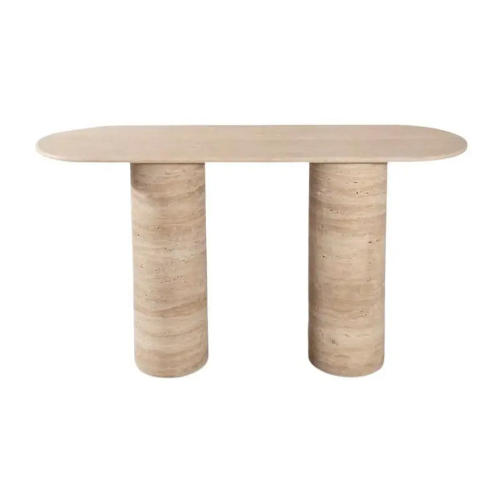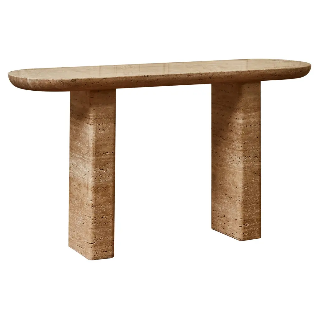 Contemporary Ellipse Console Table, Travertine Titanium By Barh Design