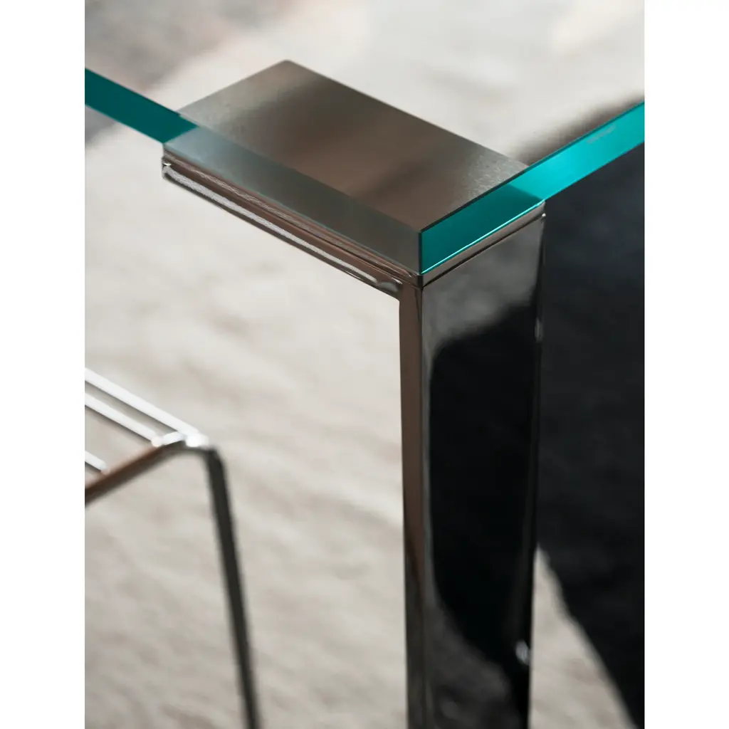 Elevate your space with the Contemporary Glass Top Low Table by Desalto. The steel legs offer stability and the glass top adds a sleek, modern touch. The perfect blend of elegance and functionality for any setting.