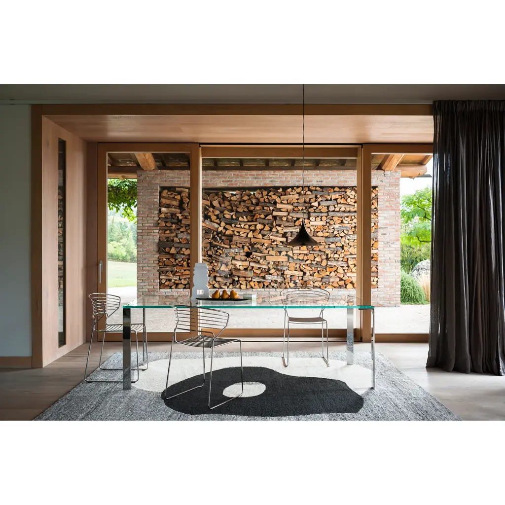 Elevate your space with the Contemporary Glass Top Low Table by Desalto. The steel legs offer stability and the glass top adds a sleek, modern touch. The perfect blend of elegance and functionality for any setting.